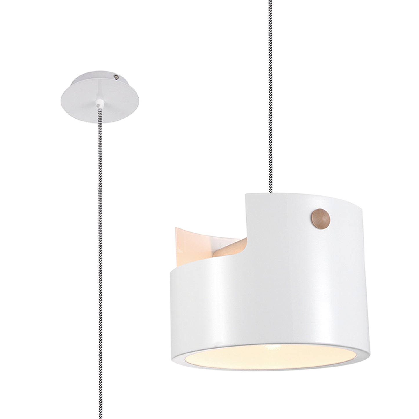 Cube Pendant Large 1x40W, White Metal / Wood by Mantra
