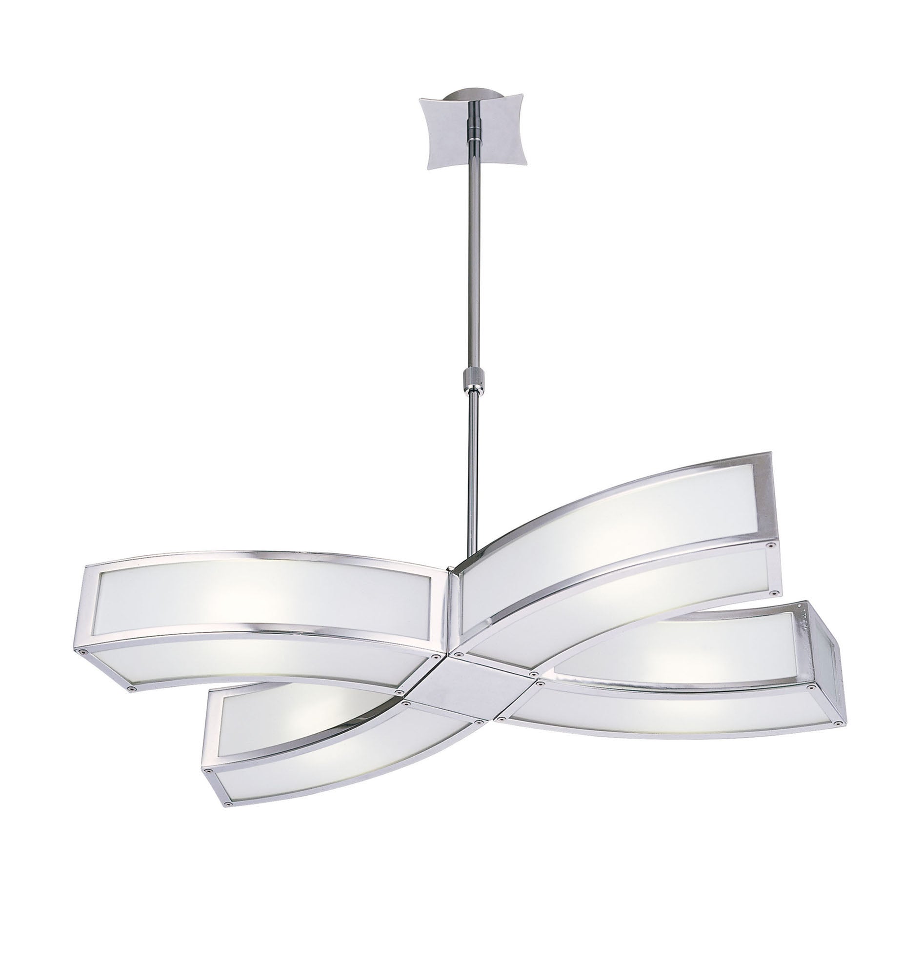 Duna Rectangular Telescopic Convertible To Semi Flush 4 Light E27, Polished Chrome/White Acrylic, CFL Lamps INCLUDED by Mantra