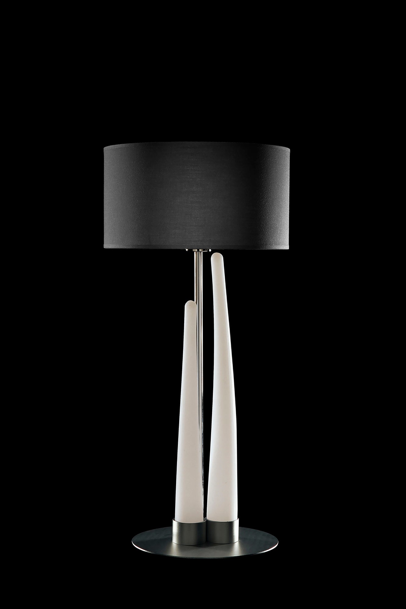 Estalacta Table Lamp 3 Light GU10 Indoor, Silver/Opal White With Black Shade by Mantra
