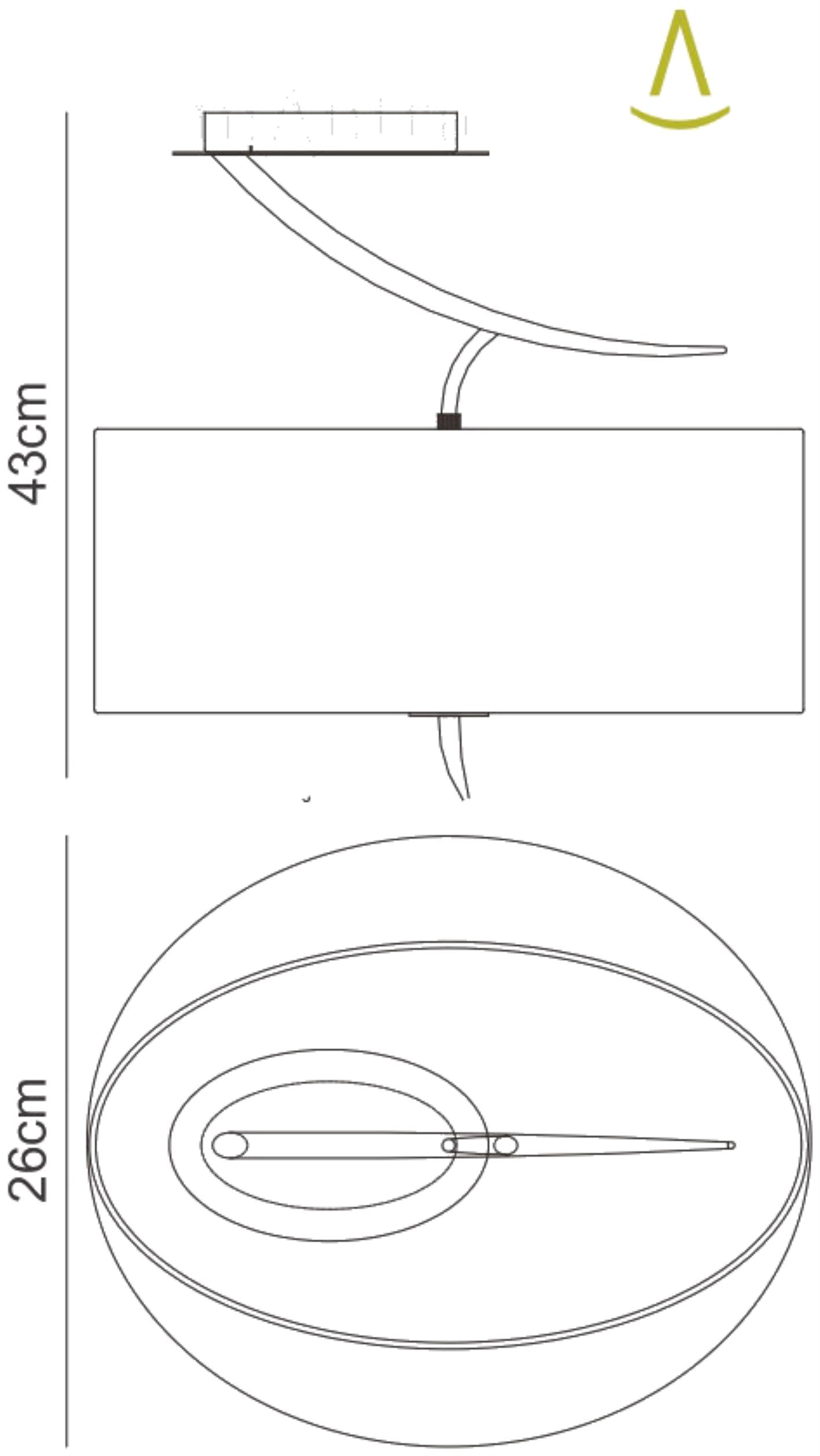 Eve Semi Flush 2 Light E27, Anthracite With Black Oval Shade by Mantra