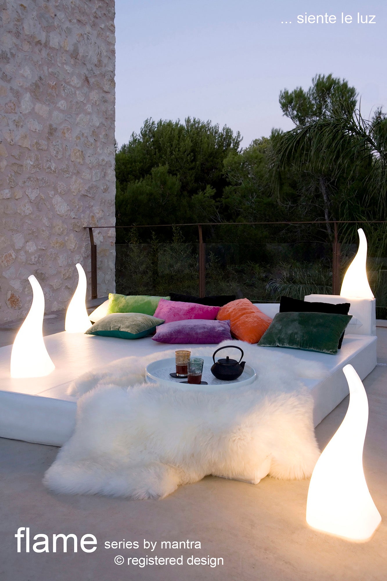 Flame is an iconic collection that comes from observing the movement of fire in nature, dancing with the light around the bonfire, going up sculpturally on an harmonic spiral. This exquisite creation has been designed for both indoor or outdoor use. The unique body is produced from high grade polyethylene and mounted on a white epoxy finish metalwork. The soft and elegant lines on the floor lamp are illuminated to perfection with the combination of GU10 and E27 lamp holders, ensuring the light can reach the pinnacle of the structure. The table lamps are also available as an induction charged model which creates a fully portable product that can be placed wherever the need arises. With built in RGB LEDs an endless option of ambient lighting can be achieved. Flame inspired by the name, offers a flare of illumination second to only nature itself.