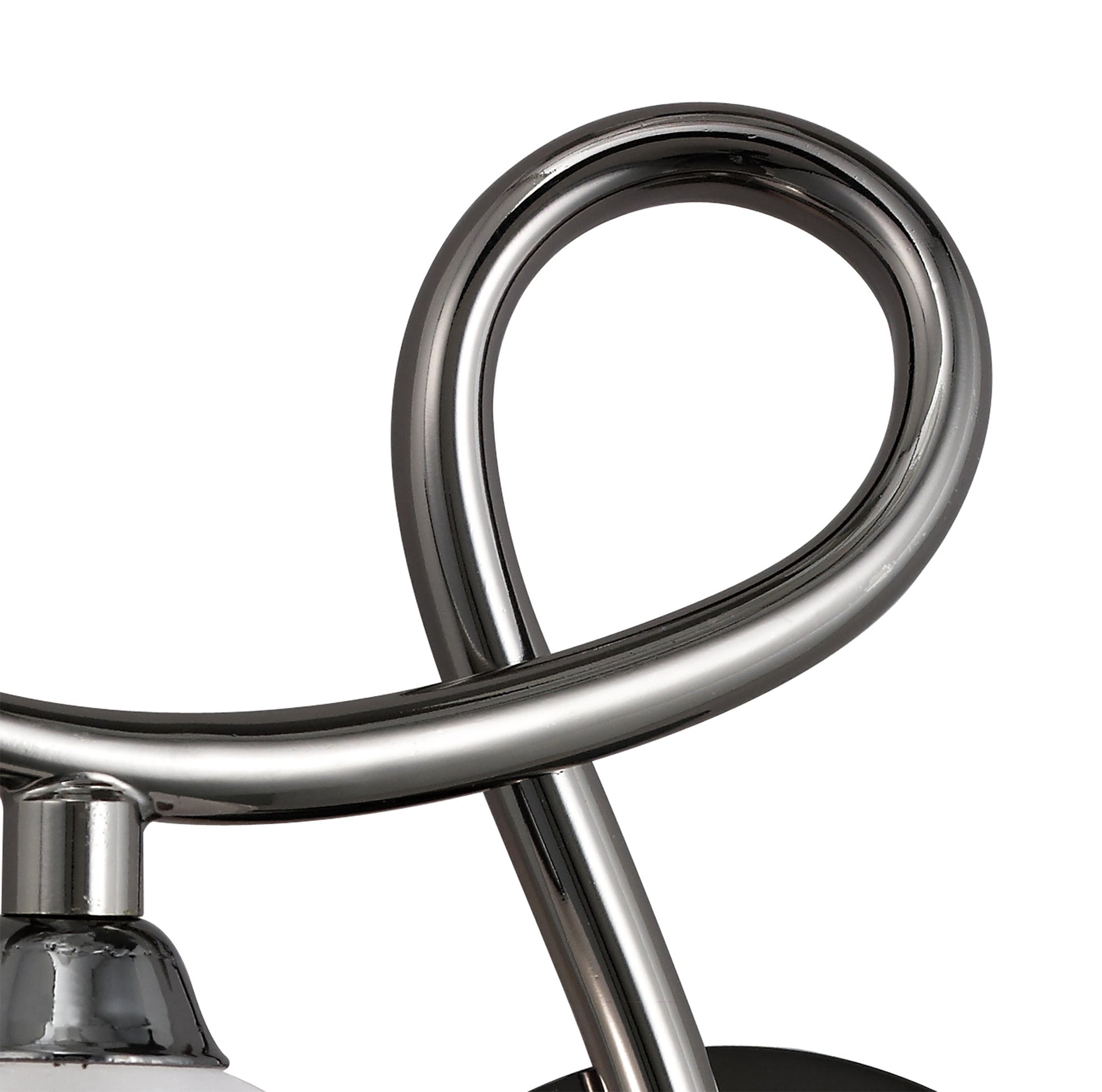 The Fragma collection combines exquisite frames, bows and impossible loops, with an original-cut sphere glass shade incorporating acid-etched reserves. This attractive and interesting range demonstrates how an artistic creation can become a reality. The fluid metal work comes to a perfect point as though it is the end of a signature. The range is available in polished chrome and black chrome and also includes a left and right handed wall lamp for that extra versatility.