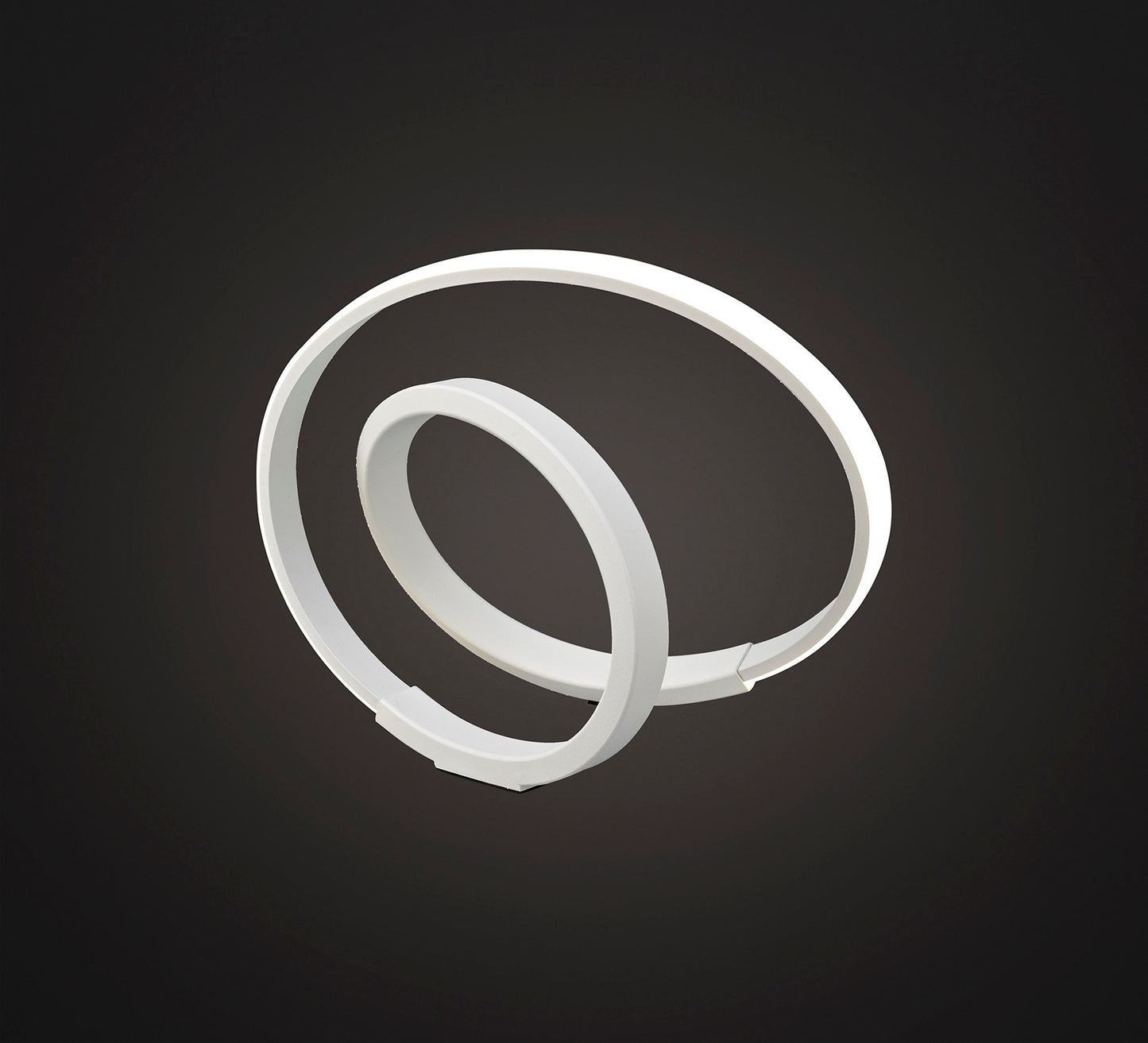 Infinity Blanco provides a neutral modern finish to the Infinity collection. Infinity artistically displays a smooth and uniform line of light without a beginning or an end in this original design by Jose Ignacio Ballester. The similar combination of white framework and frosted polycarbonate diffuser produces a subtle blended image of the curves and turns which mimic the shape and movement of rhythmic ribbons. This integral LED collection produces either a 2800K or 4000K light output to compliment the classic adaptable colour finish. The range consists of pendant and flush ceiling lights as well as an impressive looped table lamp. The flush version boasts a mirror back plate which simply doubles the impact of the design and light emitted. A number of items are also available in dimmable versions.