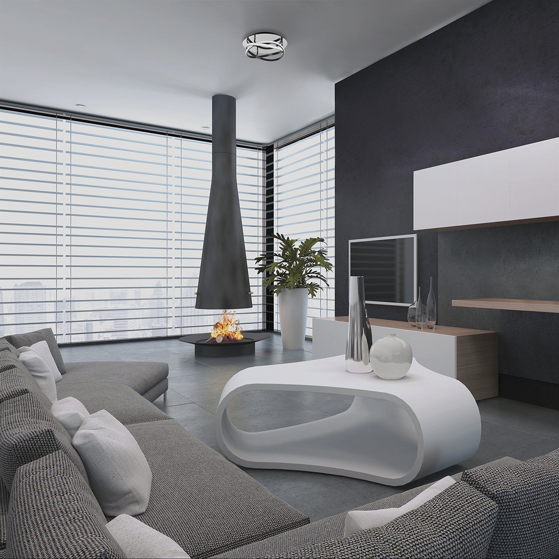 Infinity Brown Oxide offers a rustic finish to the Infinity collection. Infinity artistically displays a smooth and uniform line of light without a beginning or an end in this original design by Jose Ignacio Ballester. The contrasting combination of brown oxide framework and frosted polycarbonate diffuser produces a better realisation of the curves and turns which mimic the shape and movement of rhythmic ribbons. This integral LED collection produces a warm white (2800K) light output to compliment the more classic colour finish. The range consists of pendant and flush ceiling lights as well as an impressive looped table lamp. The flush version boasts a mirror back plate which simply doubles the impact of the design. Several items are also available in dimmable versions.