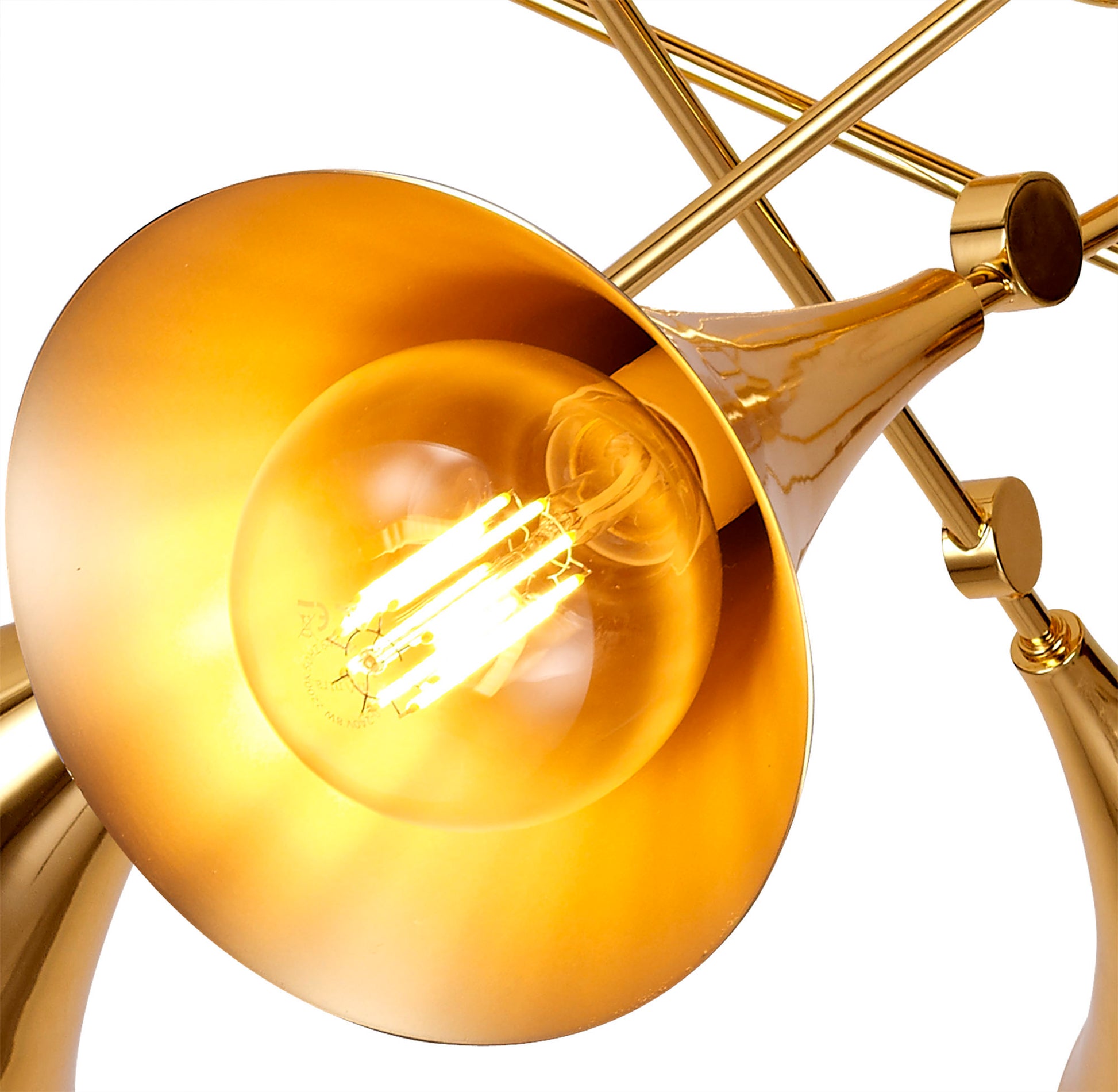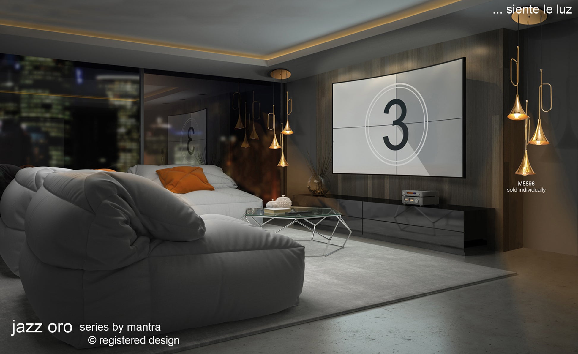 Jazz Oro is an ingenious artistic design concept by Santiago Sevillano Sebastia for Mantra. This modern collection is the manifestation of ultimate creativity, each E27 lampholder is fixed within an exact replication of the musical instrument trombone. The imitation shapes on the pendant lights are suspended from round plates on black adjustable cables. The collection is finished with a shiny polished gold colour plating to further the jazz instrument style. The range includes a table and wall lamp to complement the multiple ceiling light options. Bringing a 1950's music scene ambience to its room setting this range is an incredibly unique lighting decor feature.