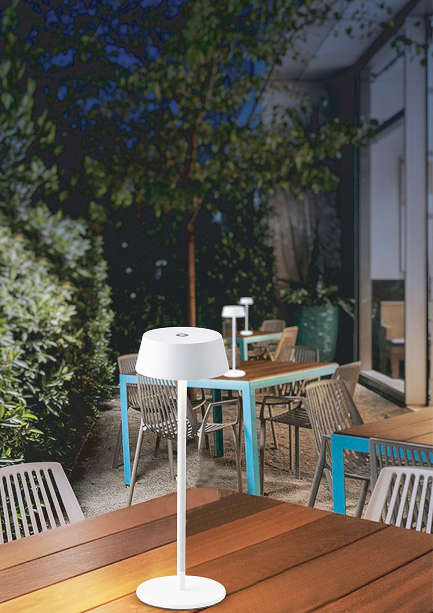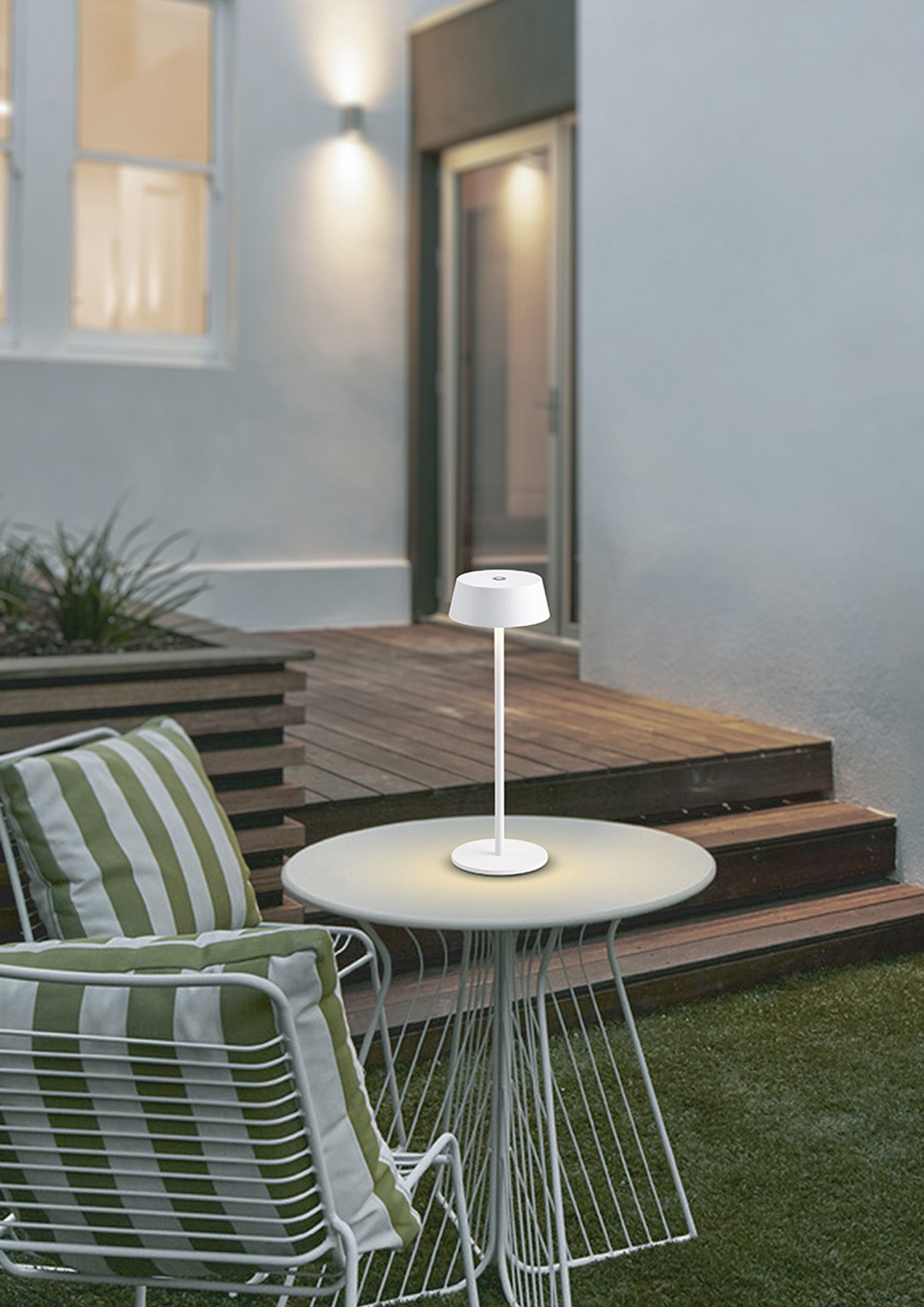 Mantra presents the K4 range, an outdoor IP54 rated table lamp available in either a white, black or rust brown finish. The form can be misconceived as a traditional looking table lamp but this has been re-interpreted to design a more suitable outdoor alternative. The table lamp is mostly comprised of angled round metal framework to reflect a stand and lampshade outline. The acrylic diffuser conceals the integral LEDs.