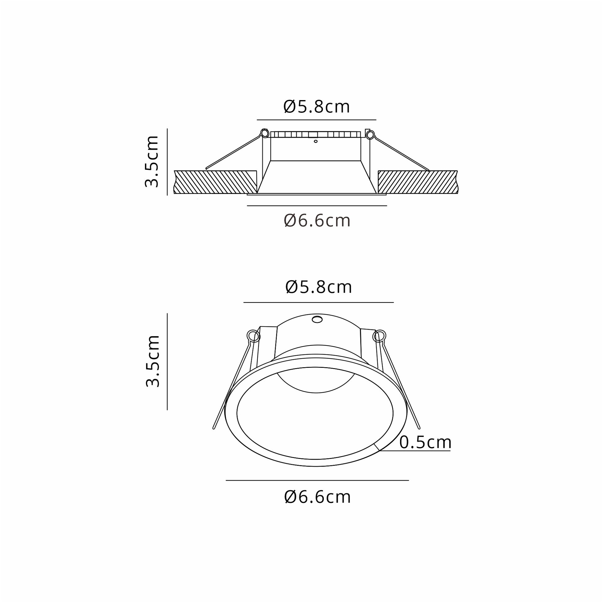 Kiel Recessed Spotlight 6.6cm, Slim 5mm Trim, 35mm GU10 (Max 8W), IP54, Cut Out 60mm, White by Mantra