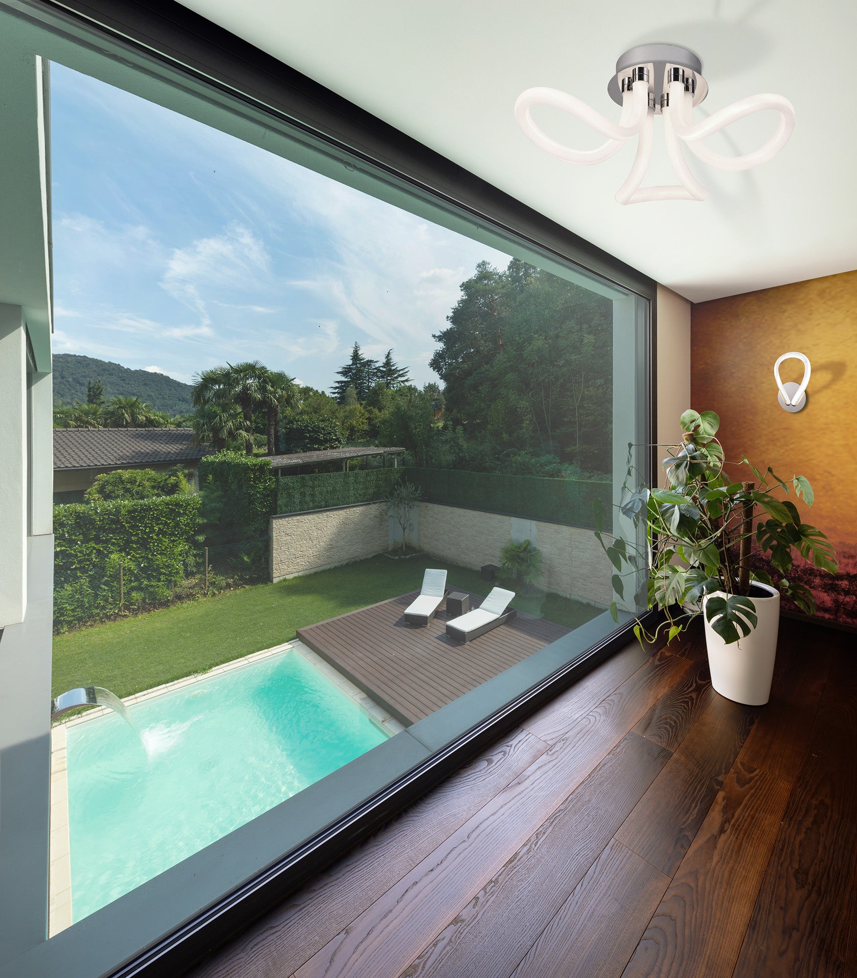 Knot Telescopic\Semi Flush 45W LED Curved Arms 3000K, 3150lm, Silver/Frosted Acrylic/Polished Chrome, 3yrs Warranty by Mantra