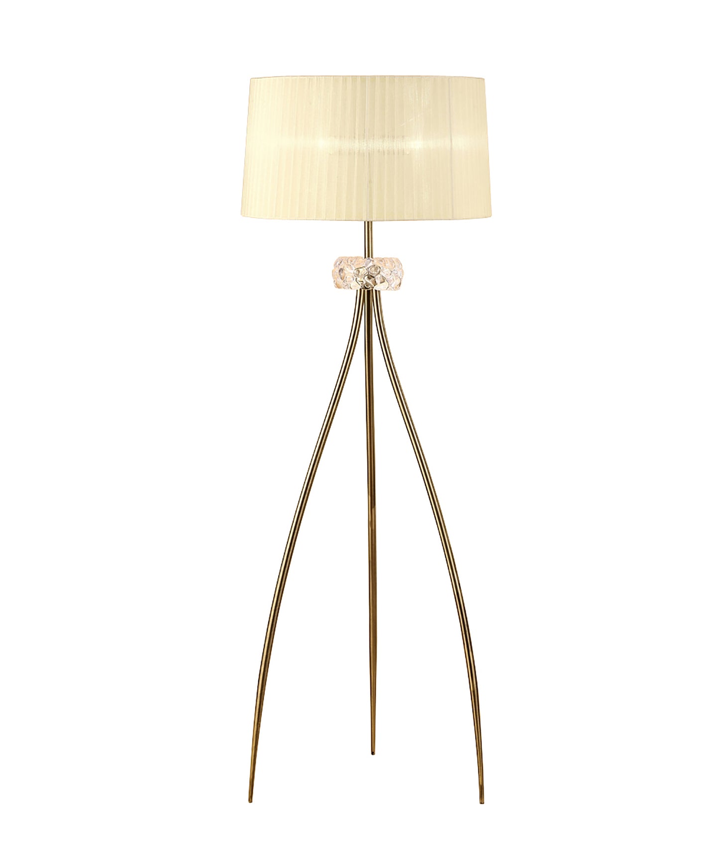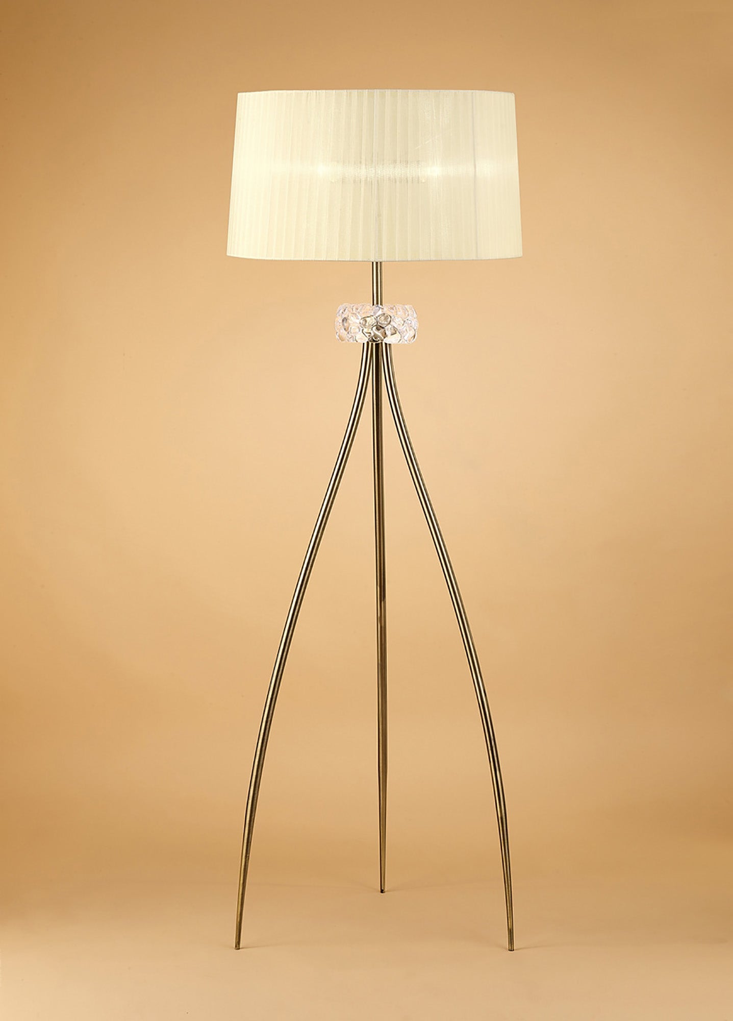 Loewe Floor Lamp 3 Light E27, Antique Brass With Cream Shade by Mantra