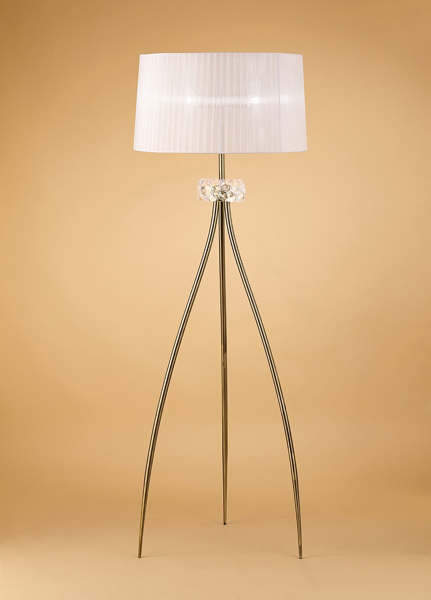 Loewe Floor Lamp 3 Light E27, Antique Brass With White Shade (4738) by Mantra
