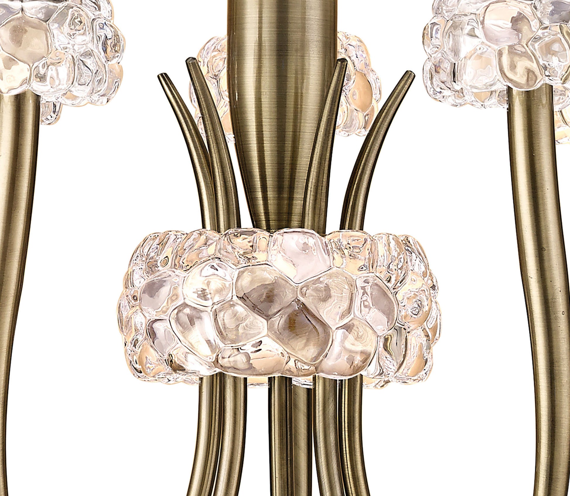Loewe collection is a mixture of gentle and simple stroke arms that amalgamate in the centre behind the unique details of a large bubbled shaped glass. Each arm also effortlessly combines the dynamic shape of the bubble glass sconces with the elegant white organza shades. The arms are artistic strokes of polished chrome that vary in diameter, subtly defining the grace of this design. The full range is also available in antique brass which is complimented with cream organza shades for a warmer effect. The floor lamp also has a particularly unique design as it poises on three legs. Loewe is the epitome of refined lighting.