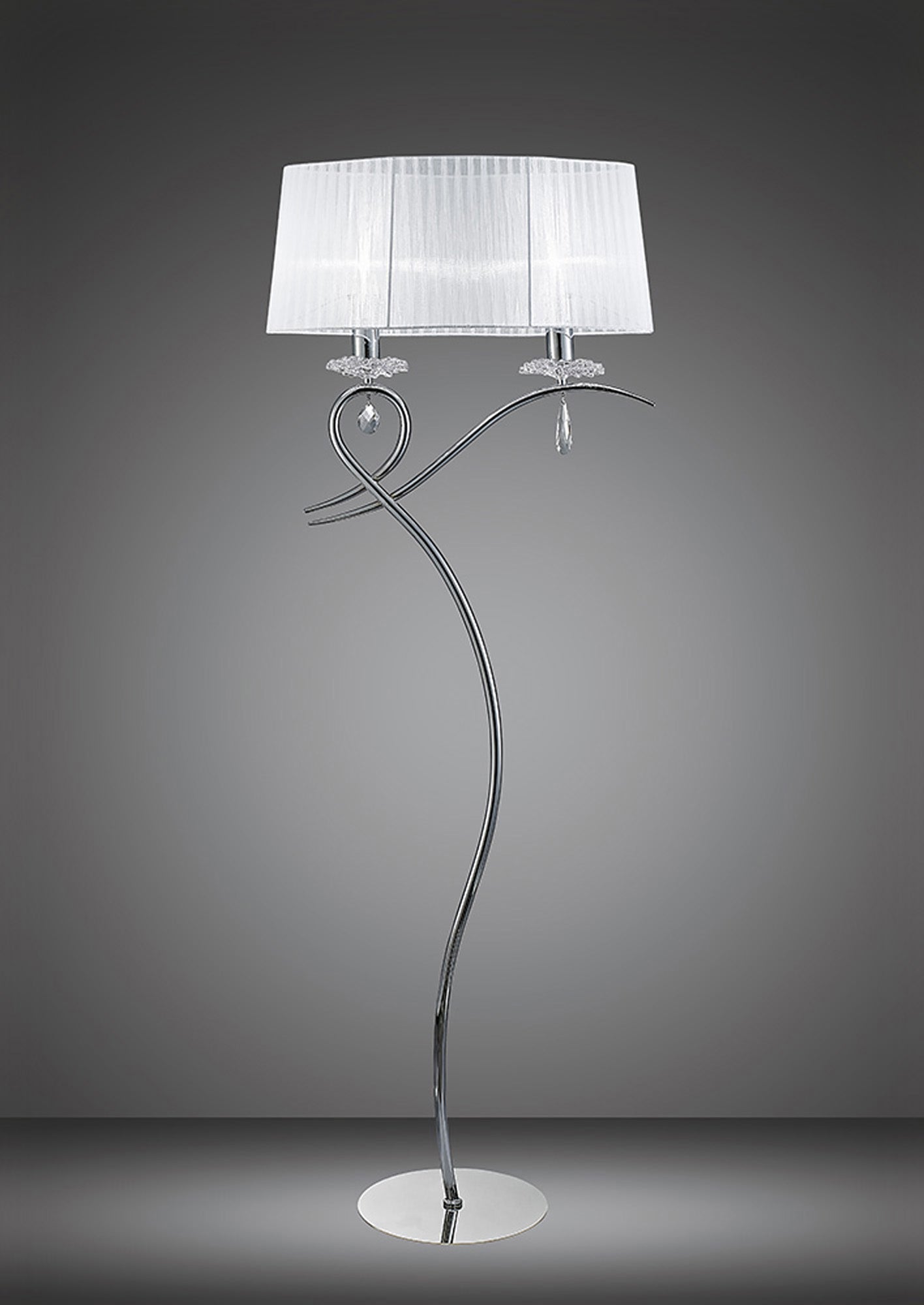 Louise Floor Lamp 2 Light E27 With White Shade Polished Chrome / Clear Crystal by Mantra
