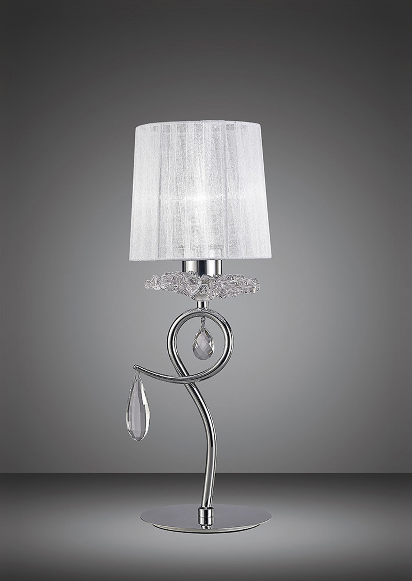 Louise Table Lamp 1 Light E27 With White Shade Polished Chrome / Clear Crystal by Mantra