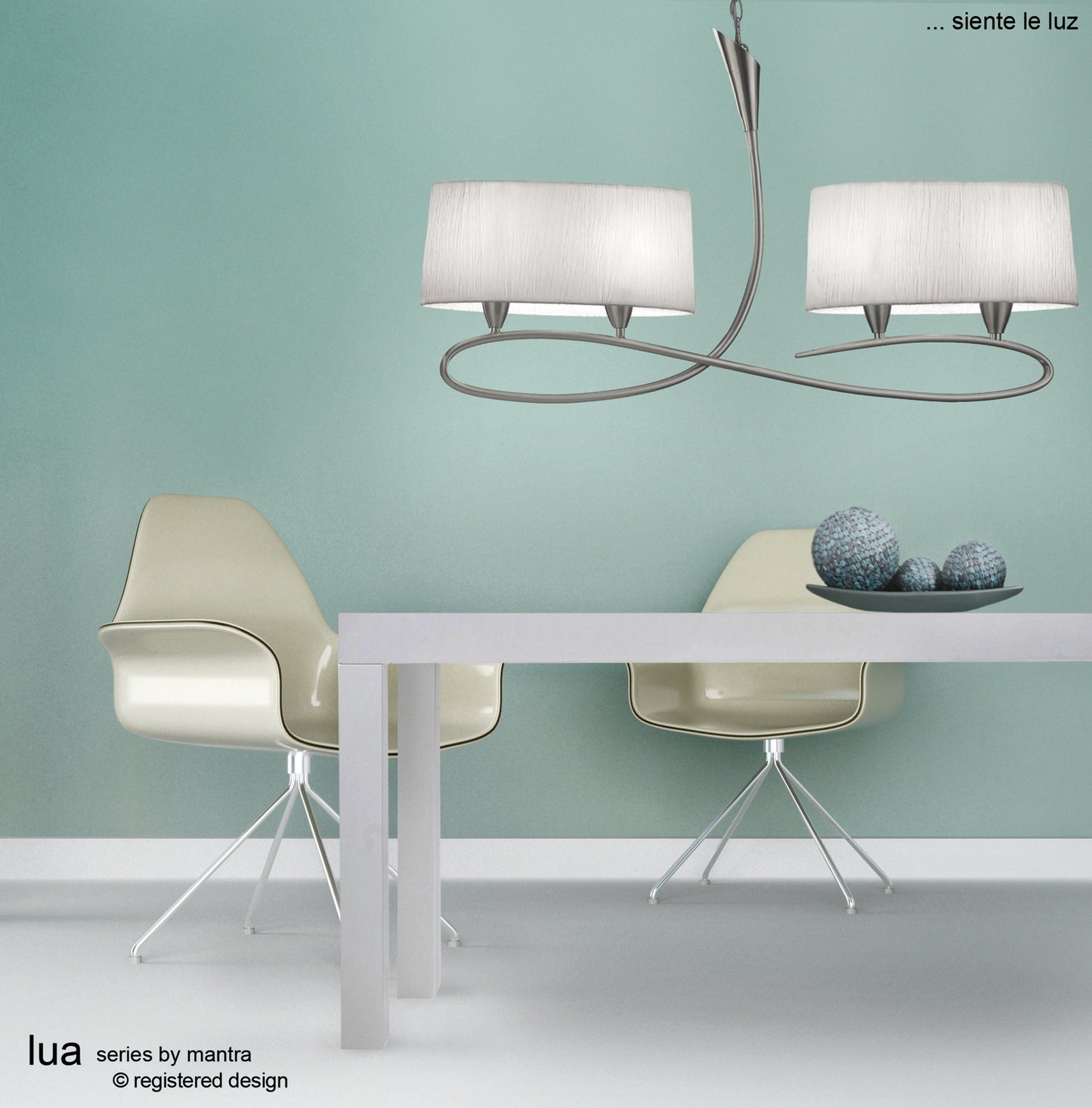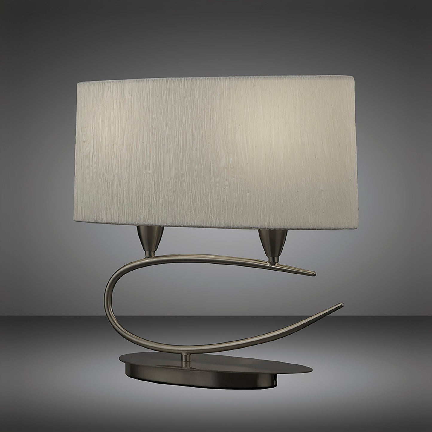 Lua Table Lamp 2 Light E27, Satin Nickel With White Shade by Mantra