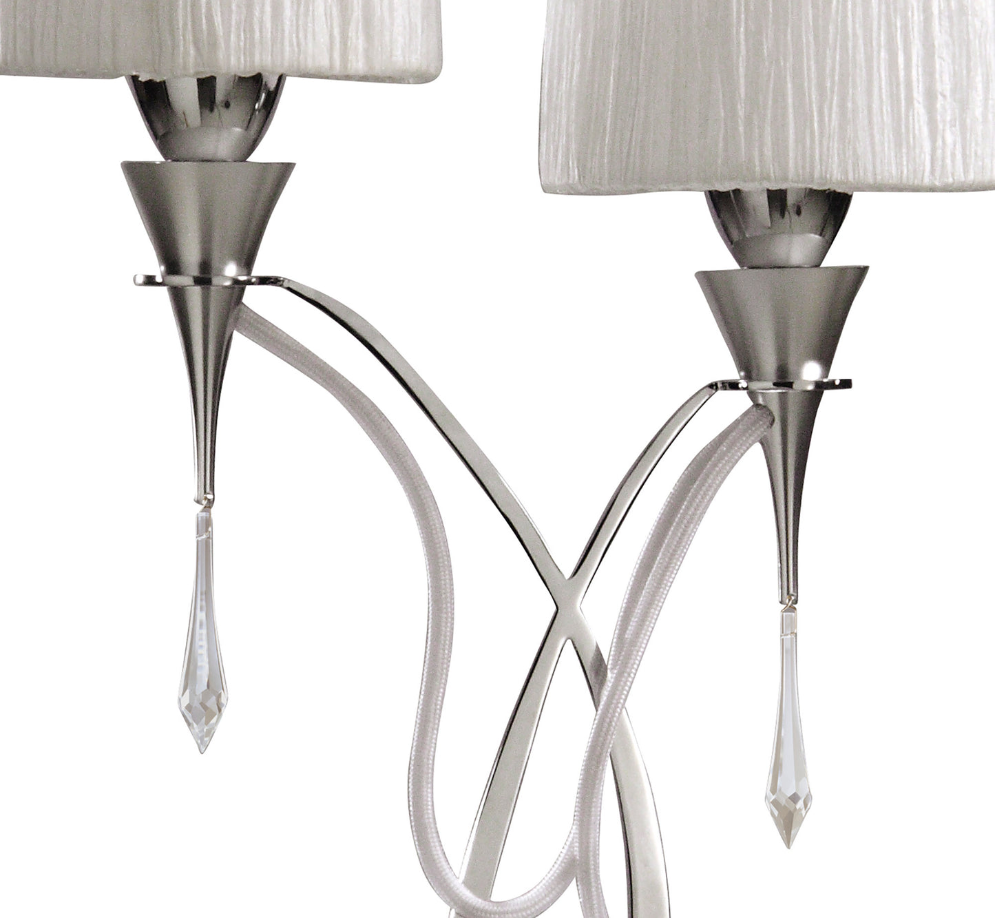 Lucca Table Lamp 2 Light E27, Polished Chrome With White Shades & Clear Crystal by Mantra