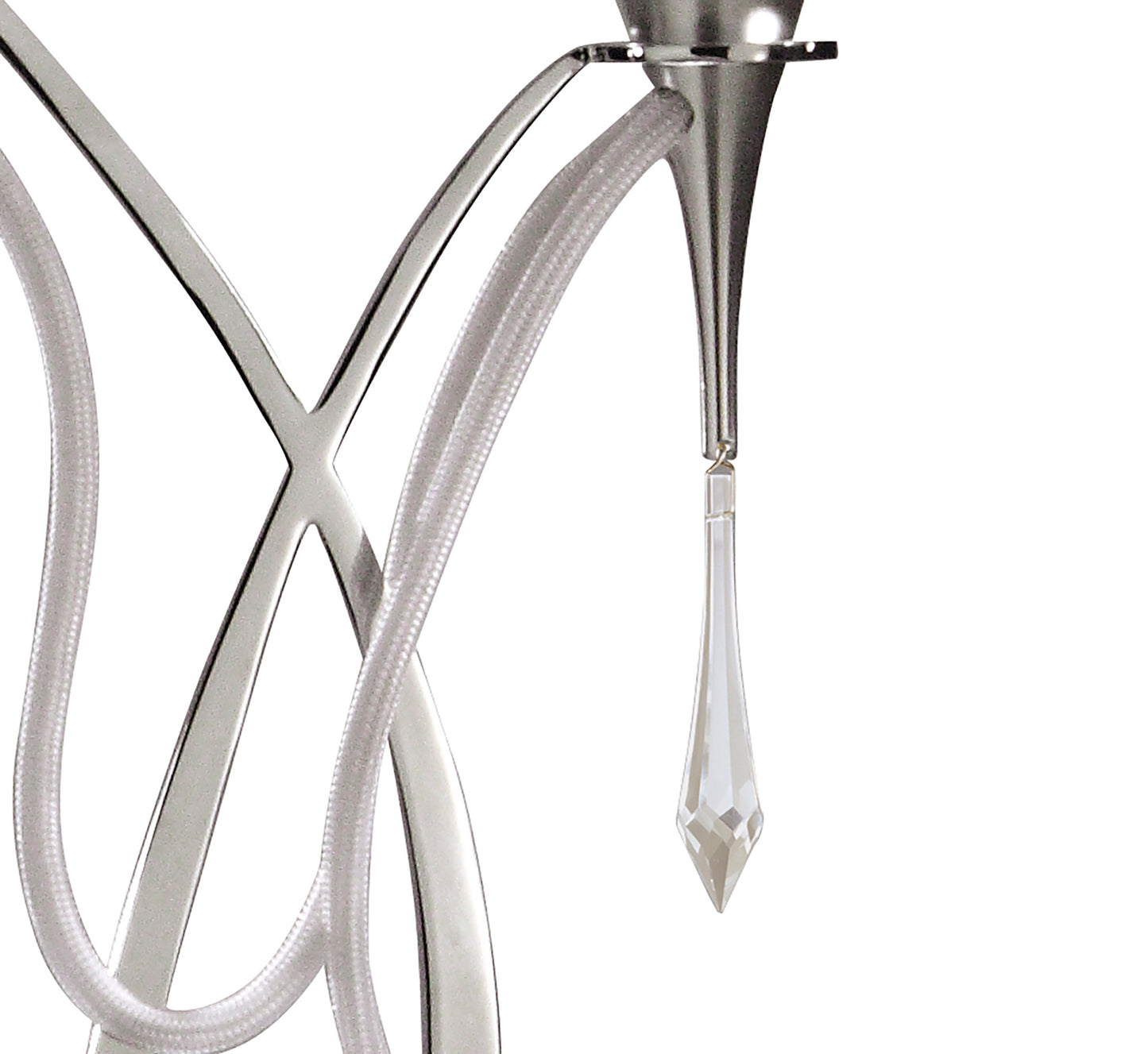 This elegant range has European design written all over it. It combines elegant shapes with its classical framework and its unique white corded cables. Every detail has been carefully chosen, from the contrasting aluminium cones to the beautiful large Asfour crystal droplets. This collection would suit a modern atmosphere as well as being a counterpoint of the most classical style. This collection is also perfect for using low energy lamps and reducing energy bills.