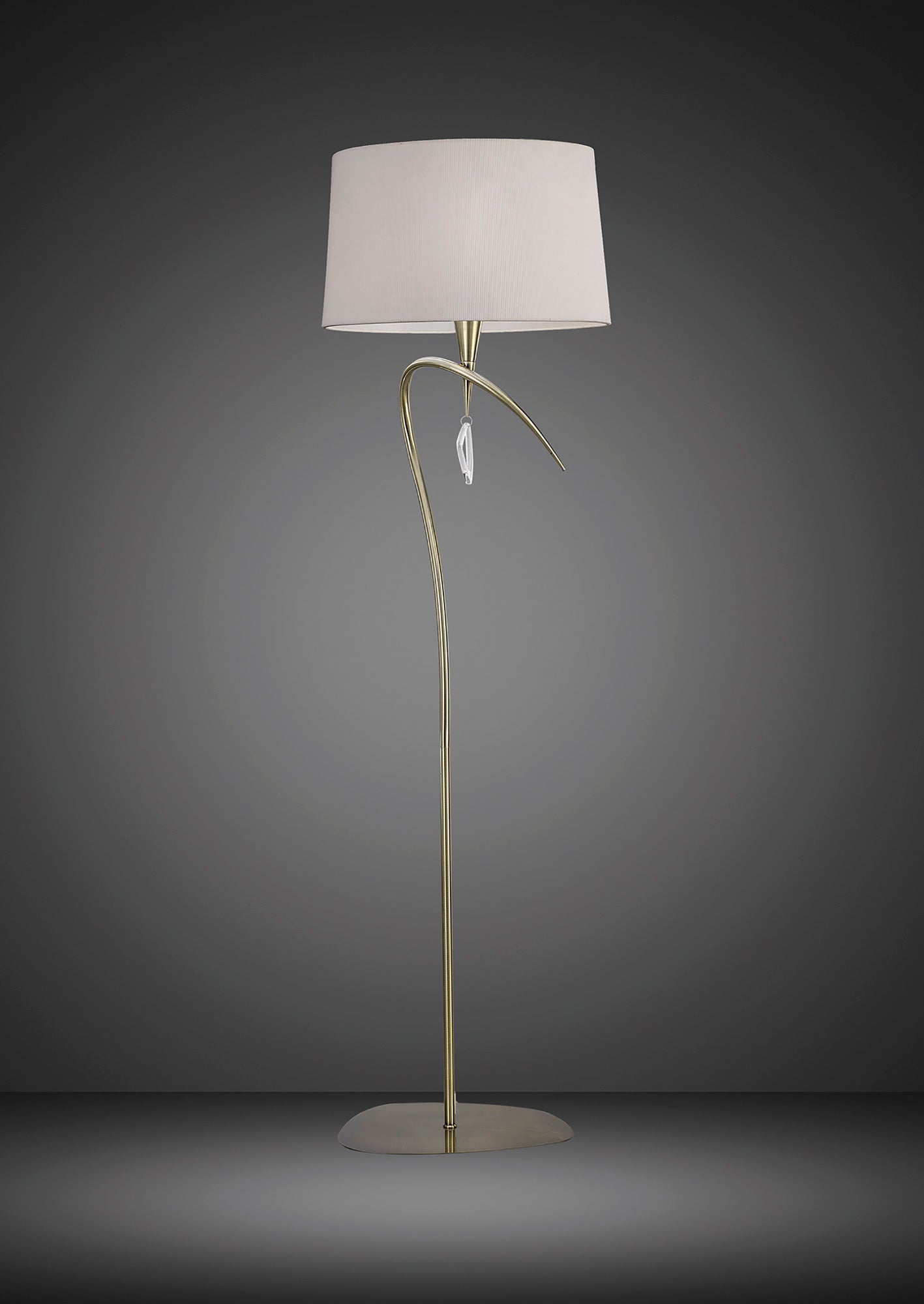 Mara Floor Lamp 4 Light E27, Antique Brass With Ivory White Shade by Mantra