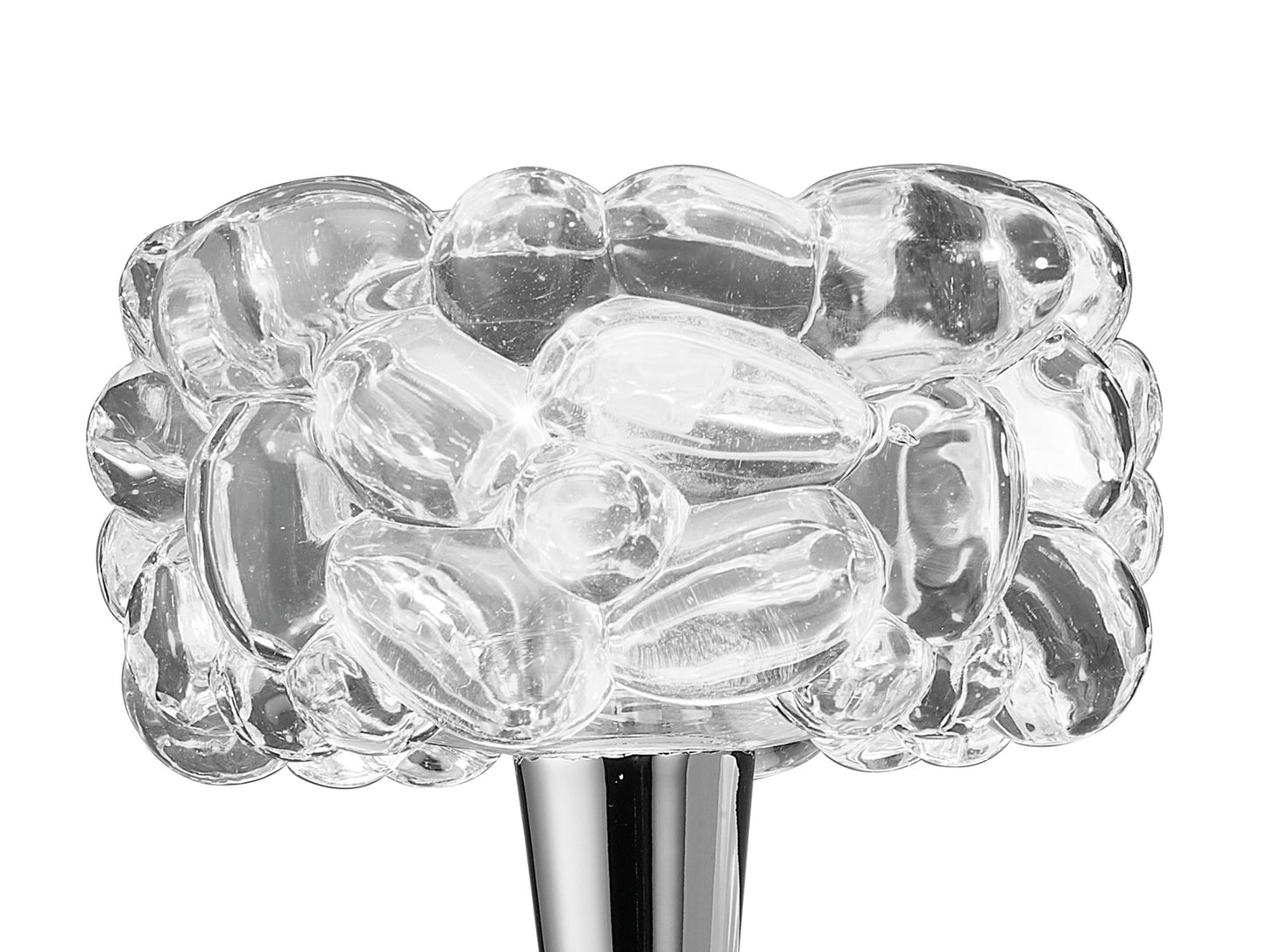 The O2 range expertly imitates oxygen bubbles found in water. This materialisation creates purity in texture and light. The undulation of the glass gives off unique reflections and shadows that lights any room space in a spectacular fashion. The polished chrome framework further enhances this effect. With the glass shades produced in two sizes, the range offers fixtures with a dramatic impact and others with a more chic appearance. O2 offers a breath-taking softness of shape that emits a tranquil aura.