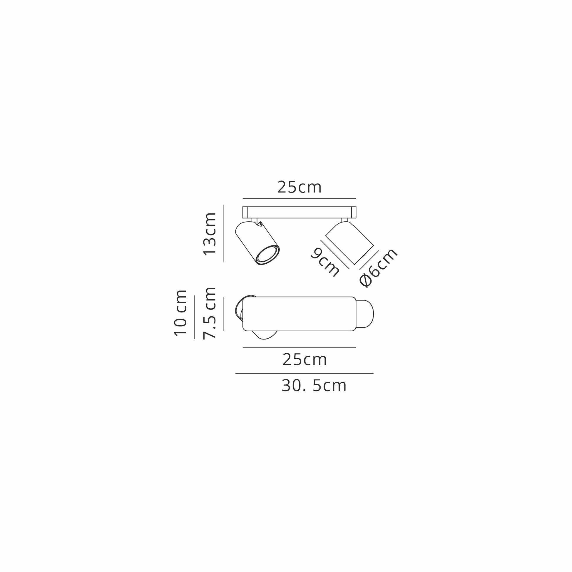 The Sal range enables the user to choose their own compatible GU10 lamp as long as it does not exceed the maximum 10W permitted for use in each fitting. The linear and round light fixtures feature short cylindrical pivotal heads, set against substantial plates. The singular spotlights have a square plate and the wall lamp version has a conveniently positioned rocker switch underneath. The entire collection including wall, table and floor lamps are coated in either a matt white, matt black or satin gold colour finish.
