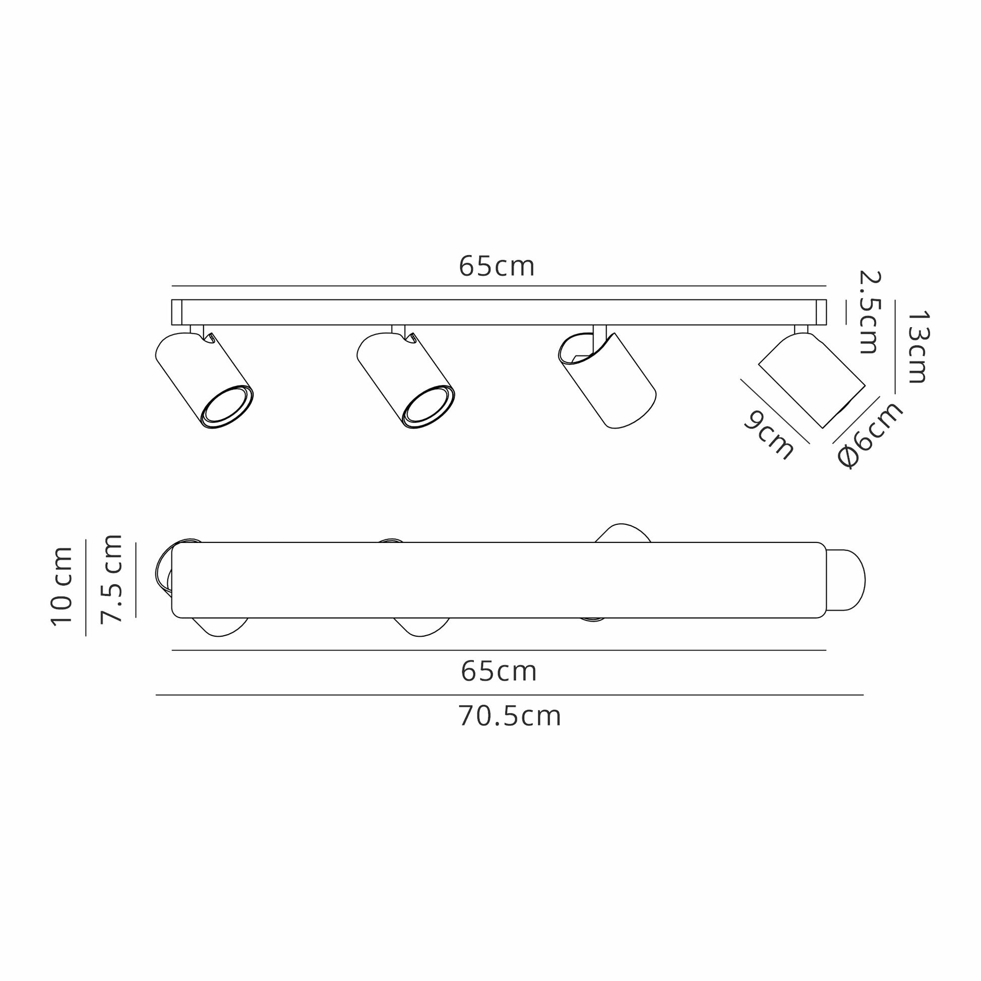 Sal Linear 4 Light Spotlight GU10, Satin Gold/Matt Black by Mantra