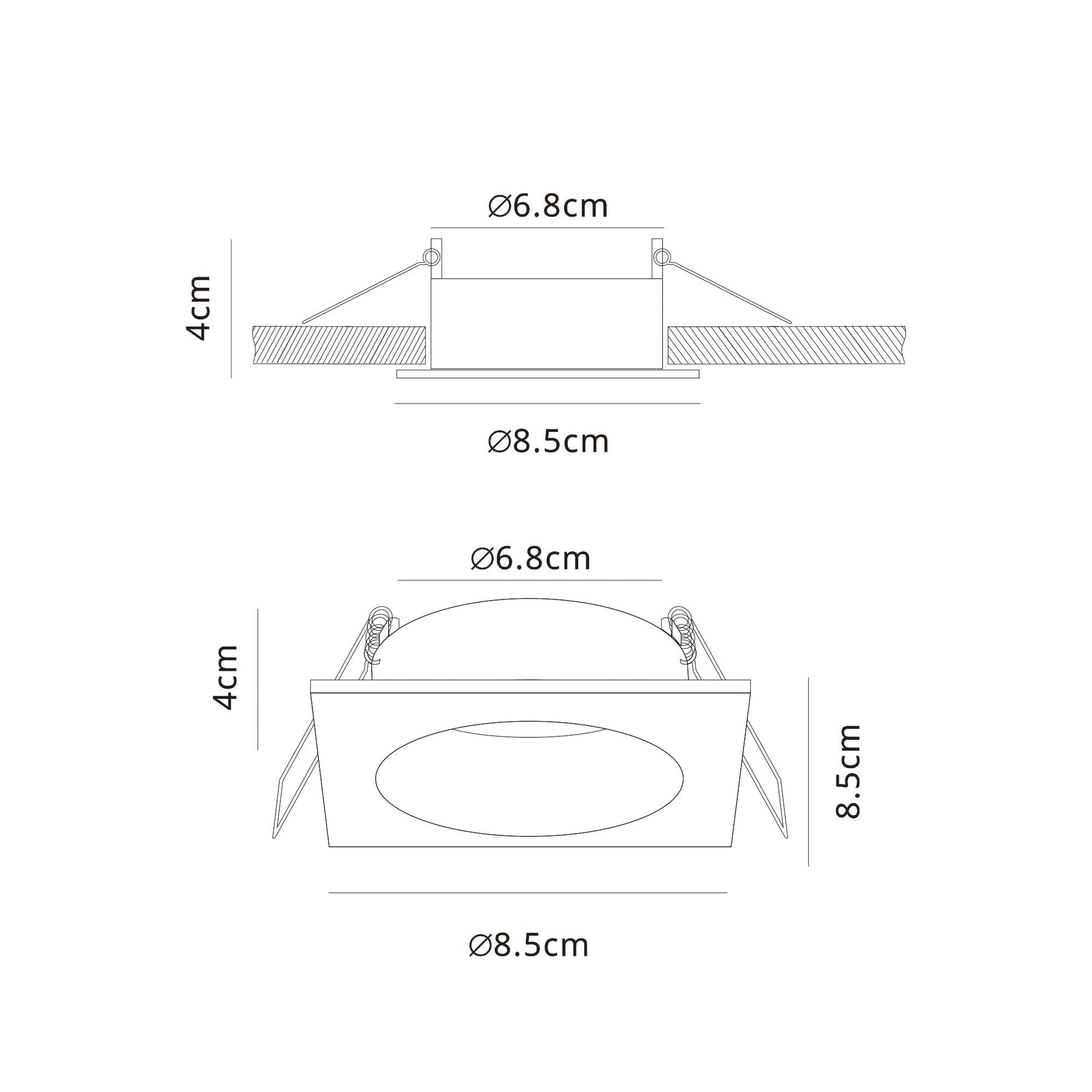 The Tavira range offers recessed spotlights in two distinct shapes: round and square, both available in either black or white finishes. These spotlights have a diameter of 85mm and a 68mm cutout size. They are compatible with GU10 lamps and have an IP54 rating increasing the number of settings in which they can be installed. The uniform and uncluttered design makes them ideal for when a sleek, unobstrusive visual is desired.