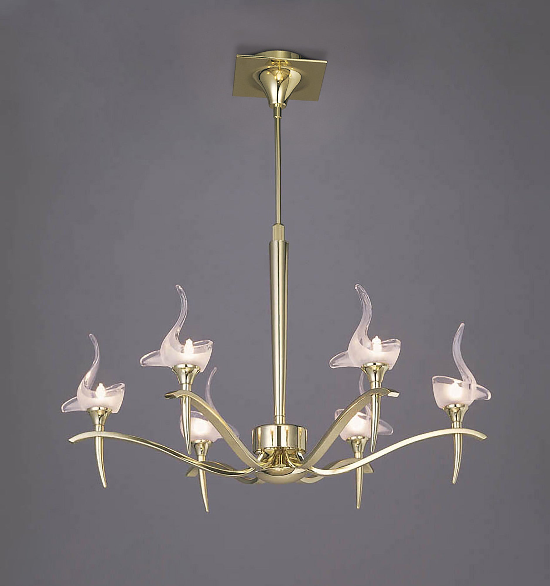 The torch like frosted glass shade once again stretches the boundaries of making a design into reality. This range incorporates the most difficult glass to produce to date in the Mantra portfolio. The wall and table lamps in particular are in a class of their own. The full family is available in 3 different frame finishes namely polished chrome, antique brass and polished brass.