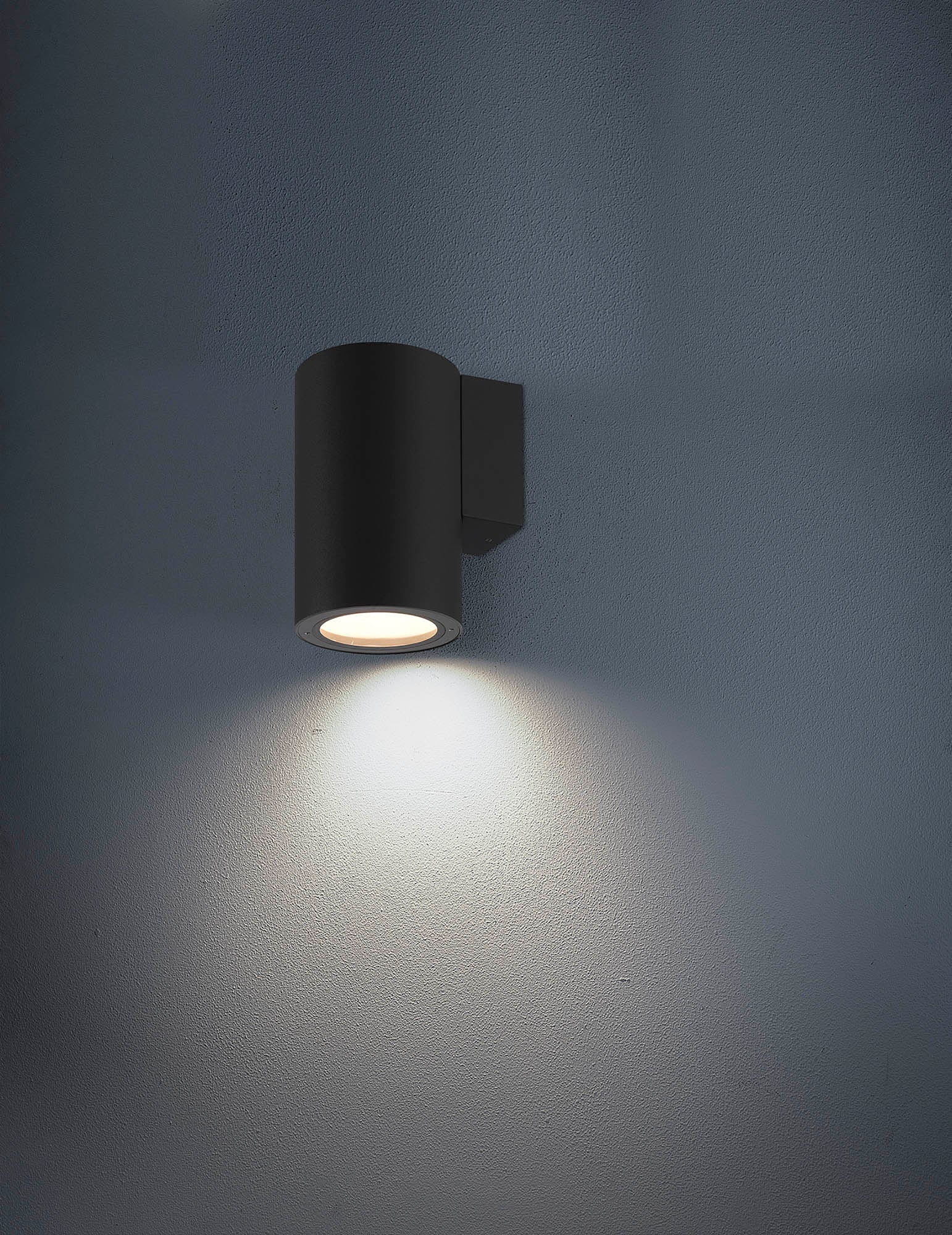Volcano is a simple yet effective collection of outdoor wall lamps available in a one light and two light version or a one light spotlight. The solid cylindrical shape funnels the light from the E27 lampholders in an up and downward direction in the two light and in a singular direction on the one light wall lamp and spotlight. A graphite colour finish is used to better withstand the wear of the outdoor elements along with the lights IP54 rating.