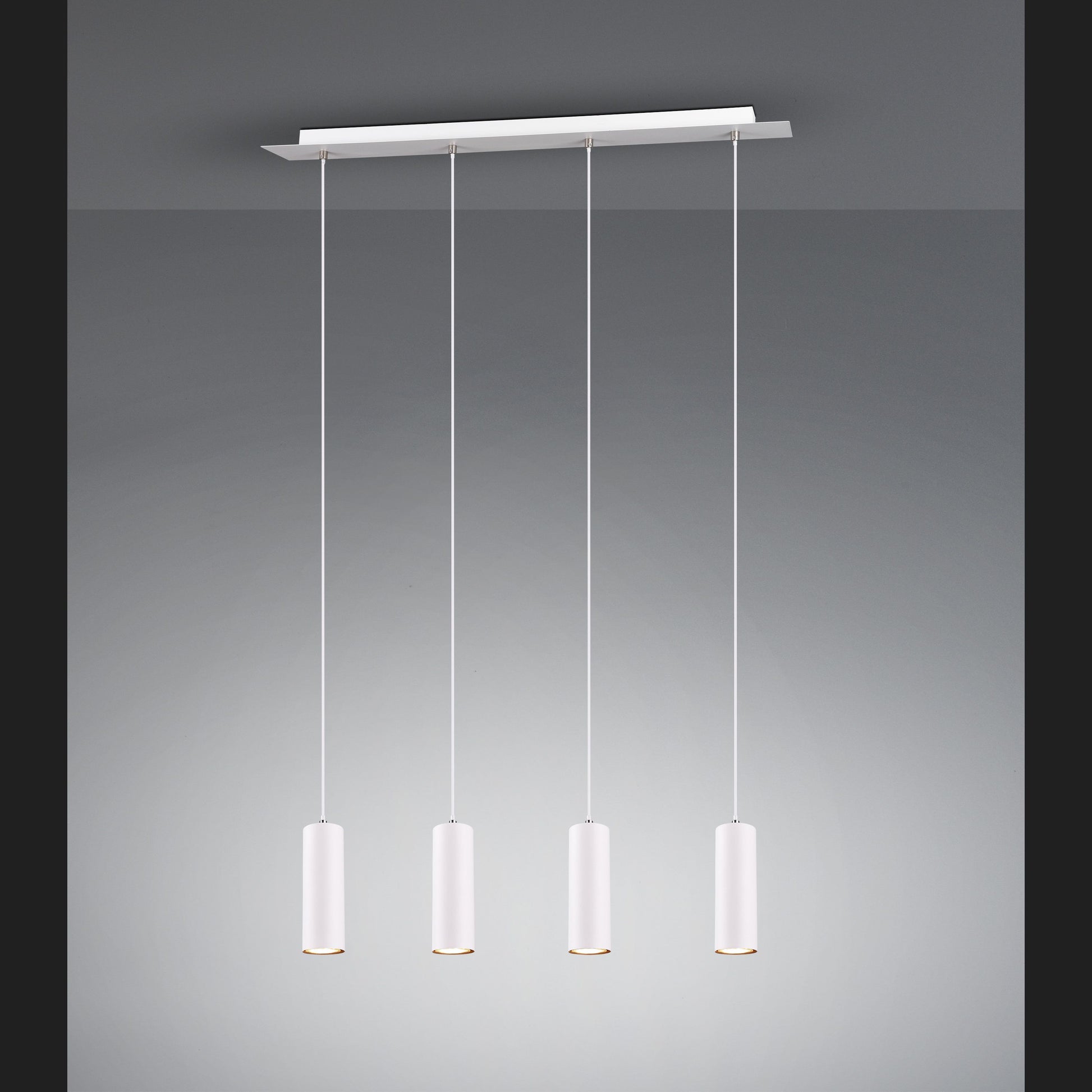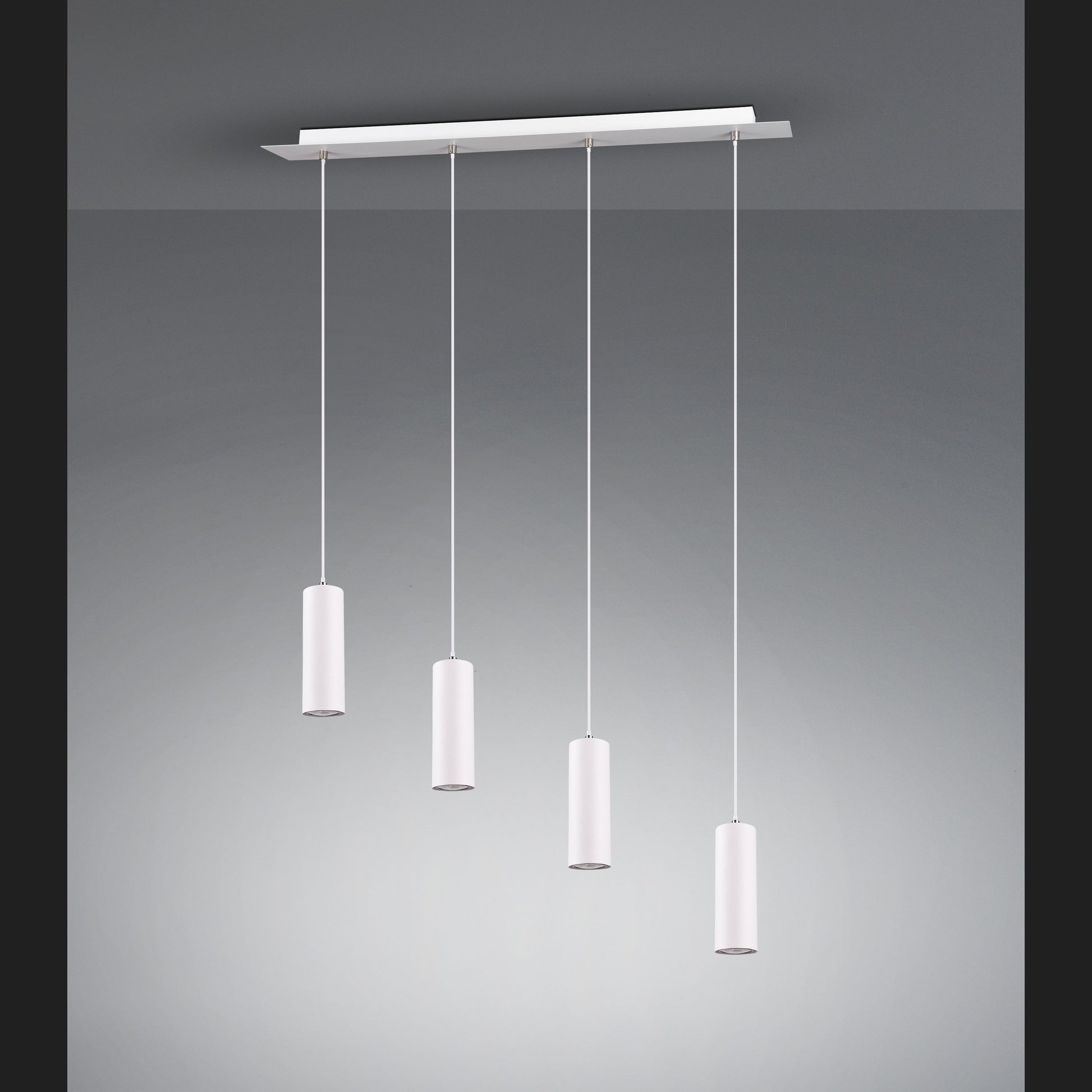 The MARLEY pendant light is not only practical in form and function, but one thing above all: simply beautiful! The light is discreet in design and impresses with its high-quality workmanship. Whether in the kitchen or in the living area: the four-light MARLEY is versatile and can be easily combined with different furnishing styles. The pendant light has a width of 75cm and is particularly effective when mounted in the centre of a dining area above an elongated dining table. During installation, the suspension lengths of the four pendants can be individually adjusted up to a length of 150cm. The pendulum is designed in the colour white and can therefore stylishly complement modern colour concepts. For energy-saving lighting, it is recommended to use an LED illuminant. These are an optimal alternative to conventional halogen lamps and stand for a high quality of light and energy savings of up to 80%. In addition, LED lamps help you benefit from a long service life, low heat generation and at the same time protect the environment.