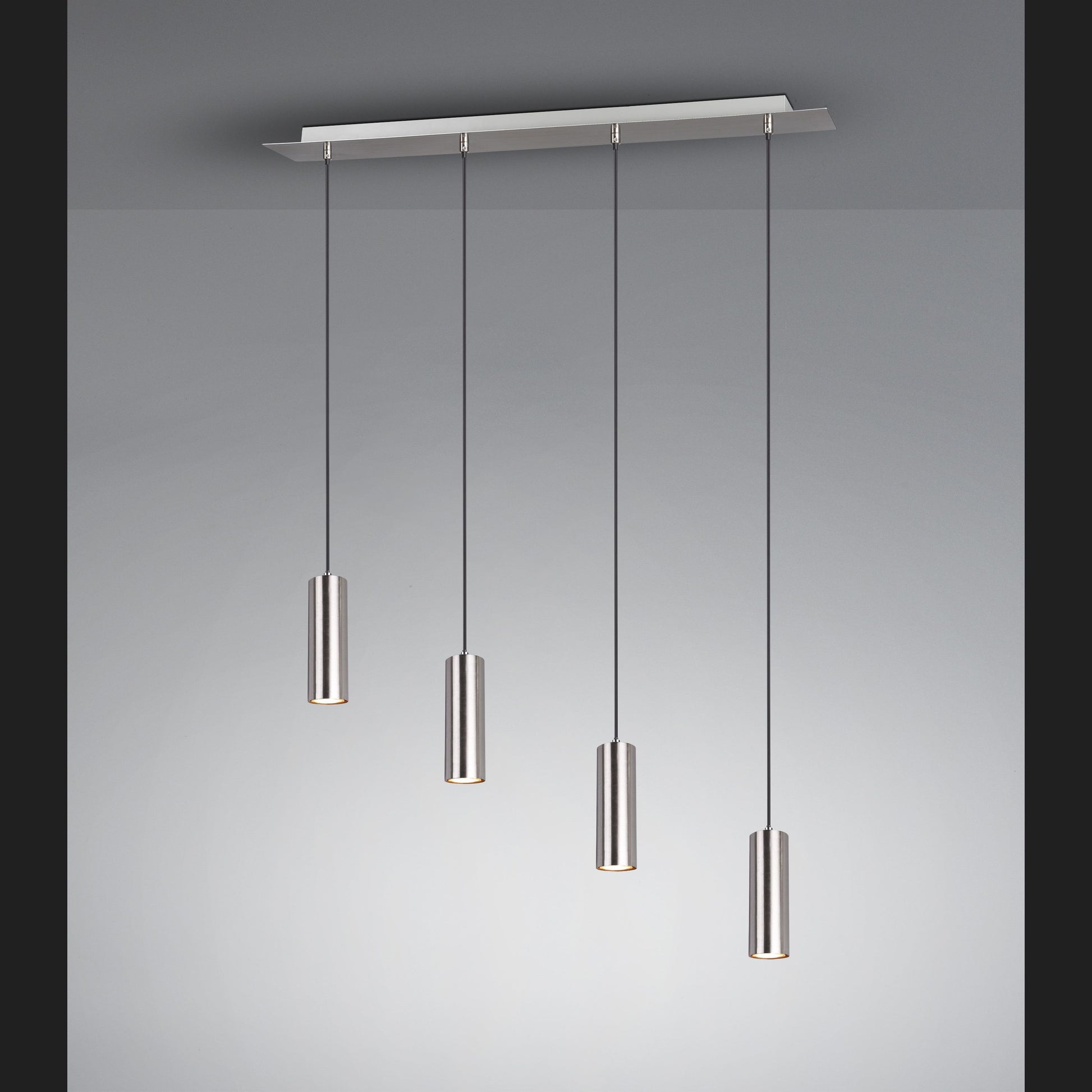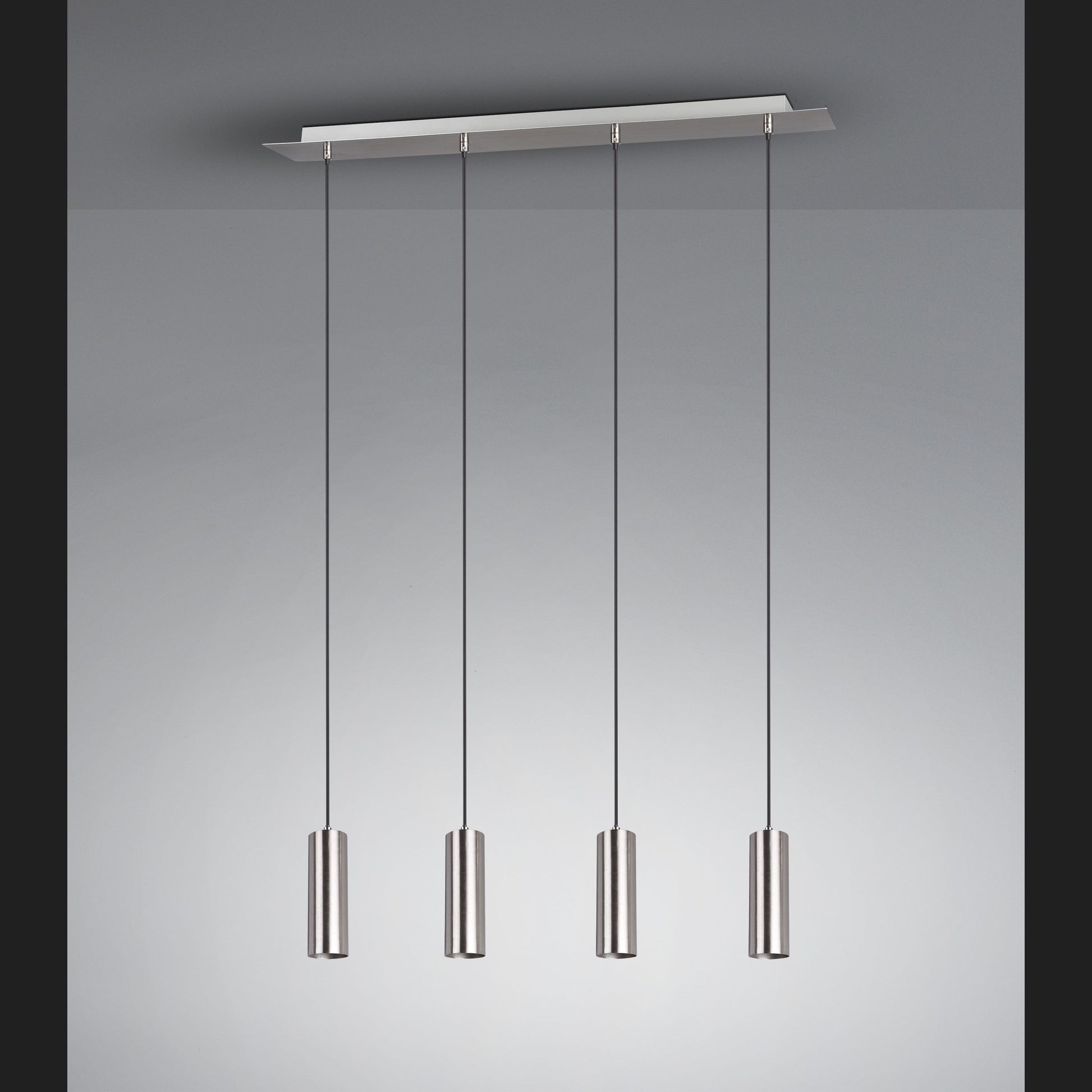 The MARLEY pendant light is not only practical in form and function, but one thing above all: simply beautiful! The light is discreet in design and impresses with its high-quality workmanship. Whether in the kitchen or in the living area: the four-light MARLEY is versatile and can be easily combined with different furnishing styles. The pendant light has a width of 75cm and is particularly effective when mounted in the centre of a dining area above an elongated dining table. During installation, the suspension lengths of the four pendants can be individually adjusted up to a length of 150cm. The pendant is designed in matt nickel and can therefore stylishly complement modern and classic colour concepts. For energy-saving lighting, it is recommended to use an LED illuminant. These are an optimal alternative to conventional halogen lamps and stand for a high quality of light and energy savings of up to 80%. In addition, LED lamps help you benefit from a long service life, low heat generation and at the same time protect the environment.