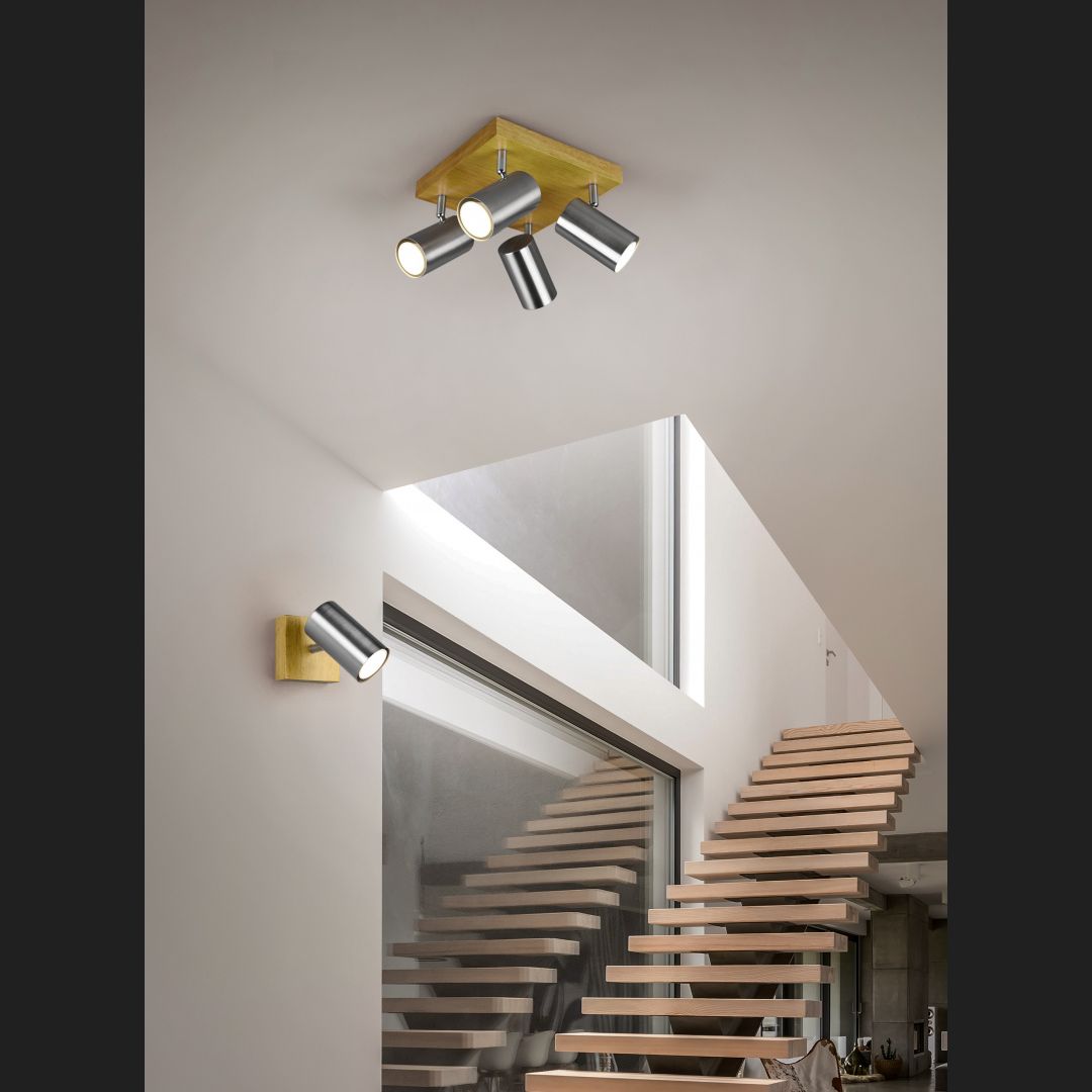 Perfect and variable light! The MARLEY spotlights are not only practical in form and function, but above all one thing: minimalist! The individual spotlight is discreet in design and impresses with its high-quality workmanship. It is freely movable and can be individually aligned as required. Whether in the kitchen, hallway or living area: the MARLEY spotlight is versatile and can be easily combined with different furnishing styles. The modern combination of wood and metal in matt nickel ensures cosiness and is right on trend. For energy-saving lighting, it is recommended to use an LED illuminant. These are an optimal alternative to conventional halogen lamps and stand for a high quality of light and energy savings of up to 80%. In addition, LED lamps help you benefit from a long service life, low heat generation and at the same time protect the environment.