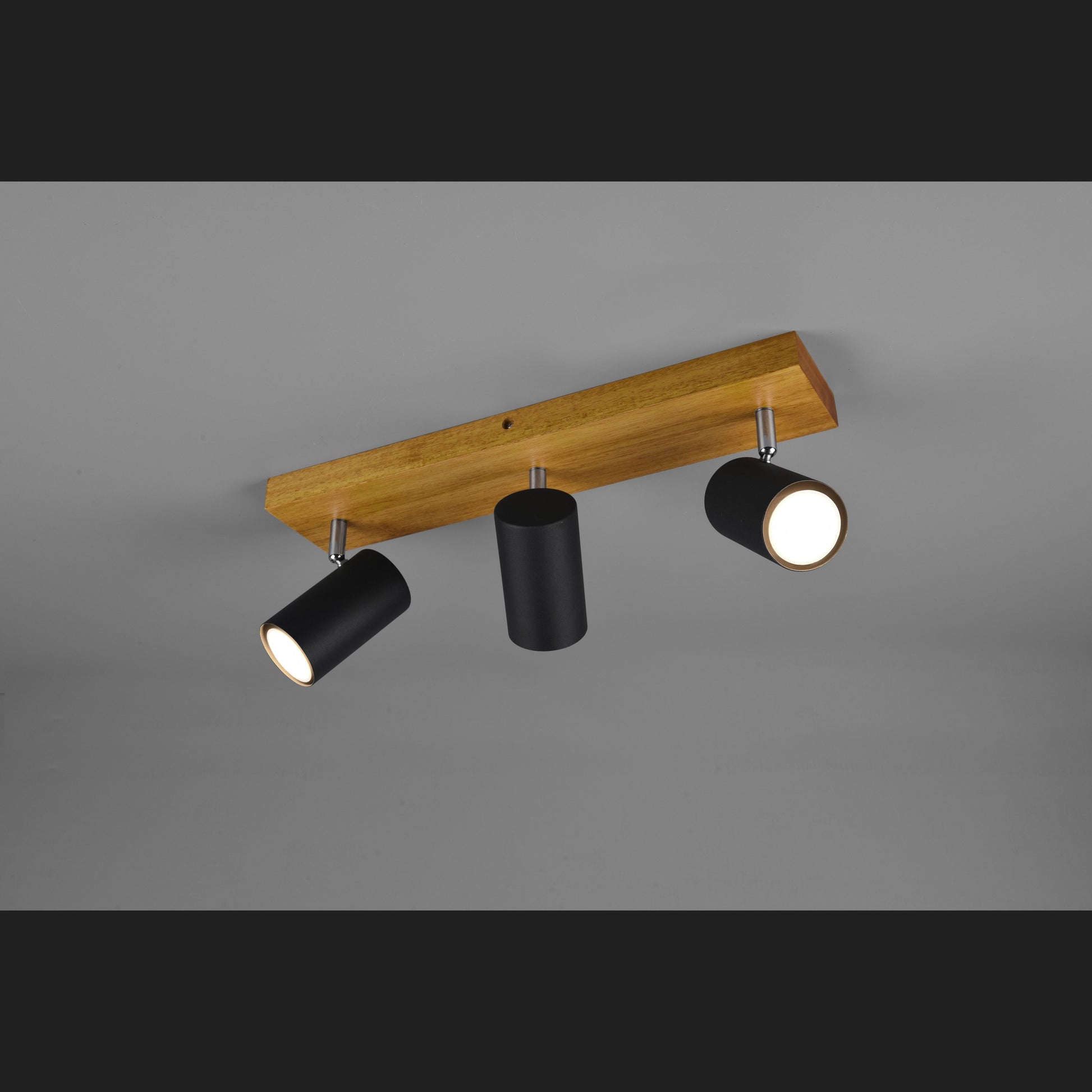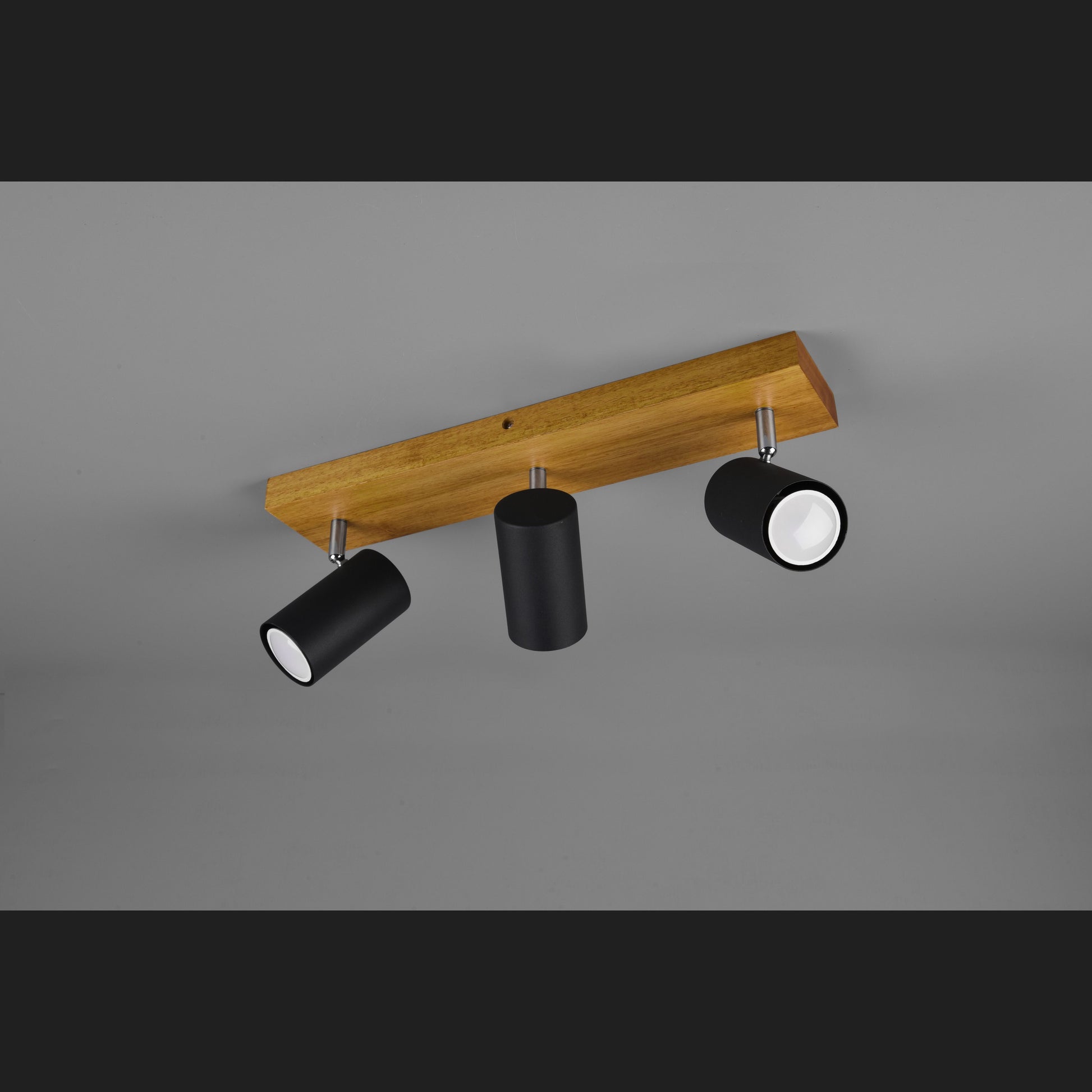 Perfect and variable light! The MARLEY spotlights are not only practical in form and function, but above all one thing: minimalist! The luminaire is discreet in design and impresses with its high-quality workmanship. The spotlights of the three-lamp luminaire are freely movable and can be individually aligned as required. Whether in the kitchen, in the hallway or in the living area: the MARLEY is versatile and can be easily combined with different furnishing styles. The modern combination of wood and metal in matt black ensures cosiness and is absolutely on trend. For energy-saving lighting, it is recommended to use an LED illuminant. These are an optimal alternative to conventional halogen lamps and stand for a high quality of light and energy savings of up to 80%. In addition, LED lamps help you benefit from a long service life, low heat generation and at the same time protect the environment.