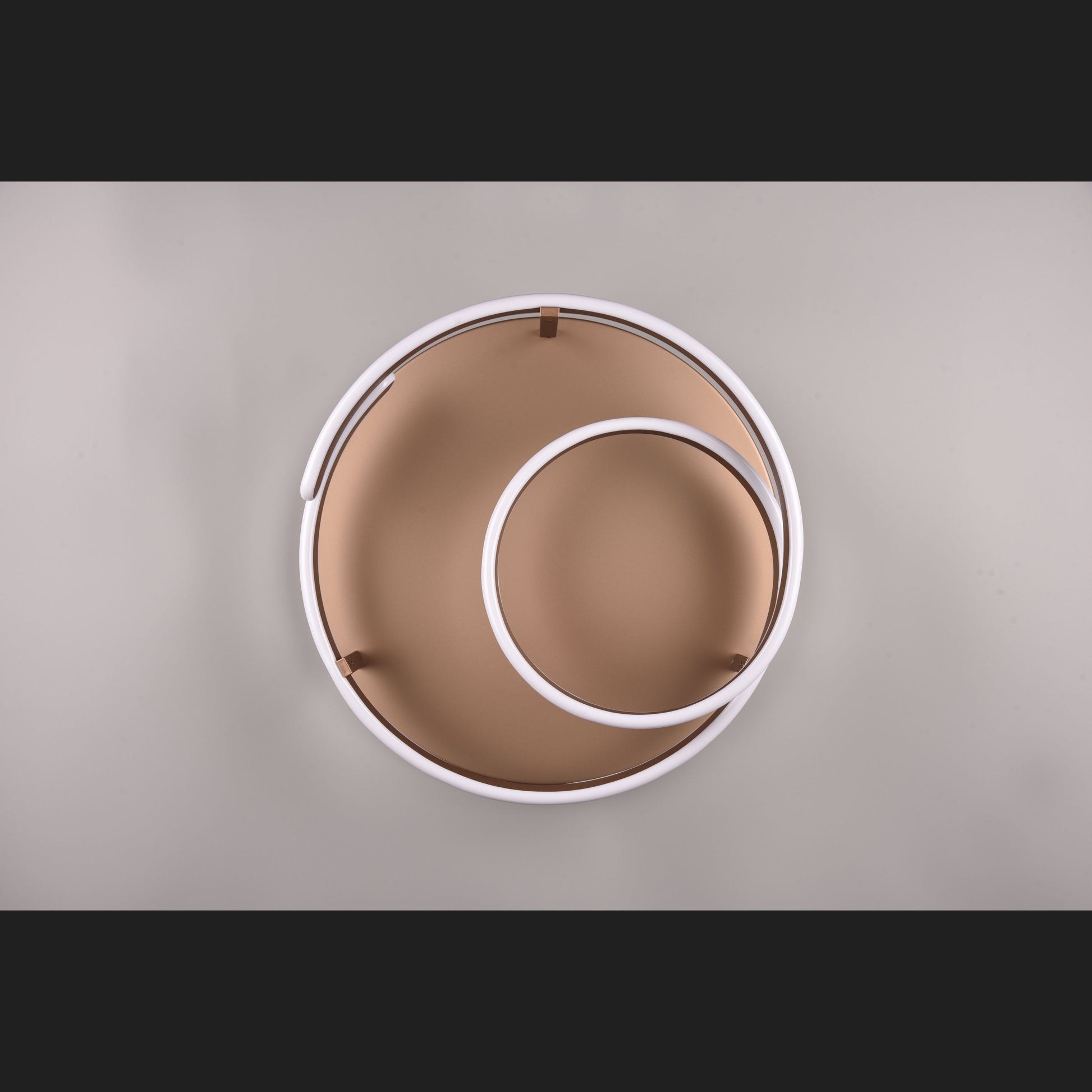 The MARNIE ceiling light plays with its curved shape and makes a strong statement. The spiral-shaped luminaire makes a big impact in the dining room or living room above a table. The indirect lighting enriches your living area with a pleasant lighting ambience. Thanks to the SWITCH dimmer, the light can be dimmed in stages (100%, 50% and 25%) using a conventional light switch. Create a special centrepiece in your living space! The special design language and the colour scheme in coffee set modern accents in your interior. The luminaire also features modern LED technology, which is characterised by high light quality and energy efficiency. Compared to conventional halogen light sources, up to 80% of energy costs can be saved. With LED light sources, you also benefit from a long service life and low heat generation while protecting the environment.