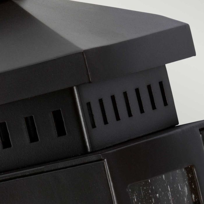 Matlock takes inspiration from lanterns of times gone by and is finished in Old Bronz. It comes with hinged doors to make changing lamps easier and is IP44 rated.