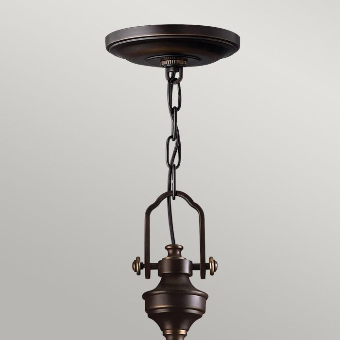 Mayflower offers a bold traditional design in a lustrous Olde Bronze finish with inside etched amber glass. The unique yoke-mount glass holders and decorative cast tension knob detailing add authentic flair.