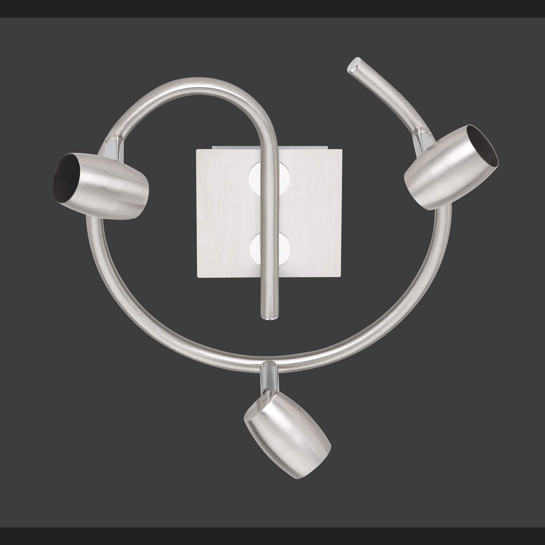 The MICHAEL ceiling light impresses with its timeless design, which makes it a highlight in any modern interior. It is a chic, spiral-shaped 3-light designer luminaire that blends particularly well into your living room or dining area. The classic design of the light creates a stylish flair in your home and spoils you with a pleasant light at the same time. The three spotlights can be aligned and rotated at different angles to each other thanks to a built-in joint. This gives you a ceiling light that is customised to your personal requirements, which you can use to create indirect lighting or to illuminate and spotlight a corner of the room or an object in the room. Whatever your requirements for modern ceiling lighting, this versatile luminaire will fulfil them in every respect. The diameter of the luminaire is 25cm. The light harmonises in timelessly elegant matt nickel and blends easily into a variety of furnishing styles. For energy-saving lighting, it is recommended to use an LED illuminant. These are an optimal alternative to conventional halogen lamps and stand for a high quality of light and energy savings of up to 80%. In addition, LED lamps help you benefit from a long service life, low heat generation and at the same time protect the environment.