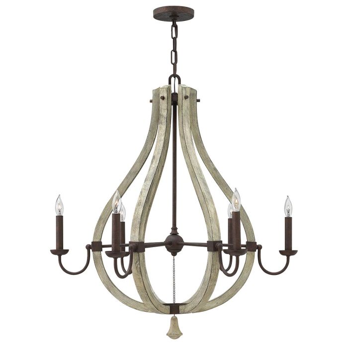 Middlefield’s rustic chic design captures a historical feel with its solid distressed wood and steel construction. A pear-shaped wood finial adds an additional elegant detail and may be hung inside or outside the frame.