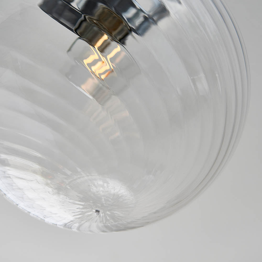 Smart and stylish wall light with clear spiral design glass shade. Dimmable and IP44 rated to allow you to create the perfect relaxing bathroom space.