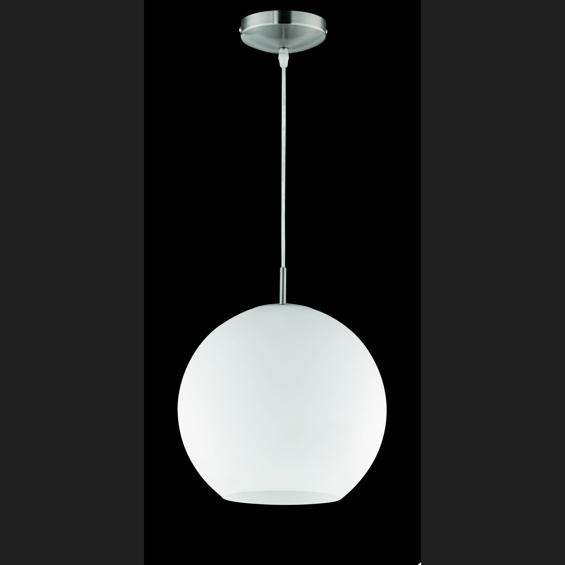 Proven design and high-quality materials. The MOON pendant light sets soft accents in your rooms. The beautiful opal glass light head in combination with the simple bracket is reminiscent of trends from times gone by, but at the same time looks fresh and modern. The light has a diameter of 30 cm and a suspension of 150 cm. Thanks to the timeless design in matt nickel with white, the light can be seamlessly integrated into all furnishing styles. For energy-saving lighting, it is recommended to use an LED illuminant. These are an optimal alternative to conventional halogen lamps and stand for a high quality of light and energy savings of up to 80%. In addition, LED lamps help you benefit from a long service life, low heat generation and at the same time protect the environment.