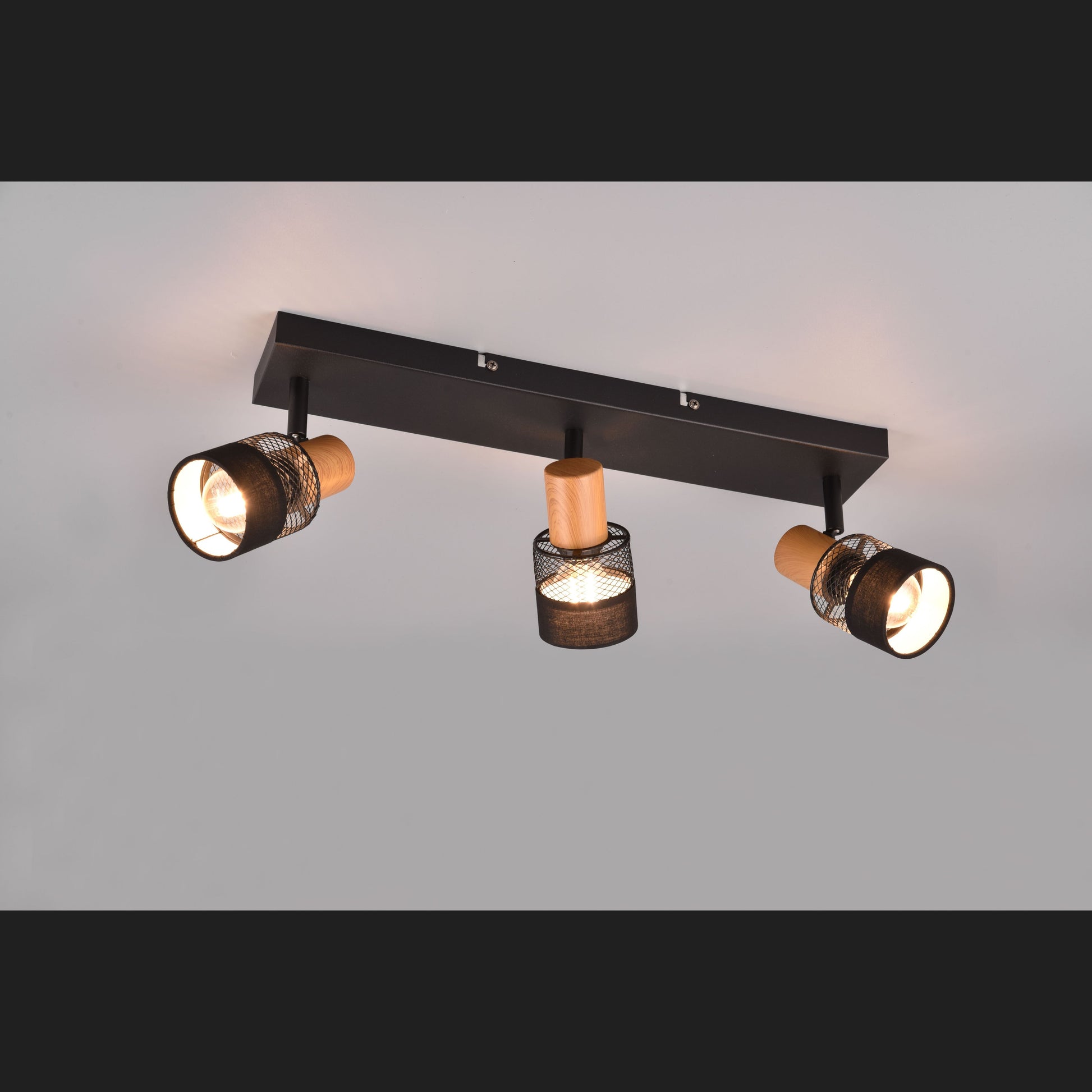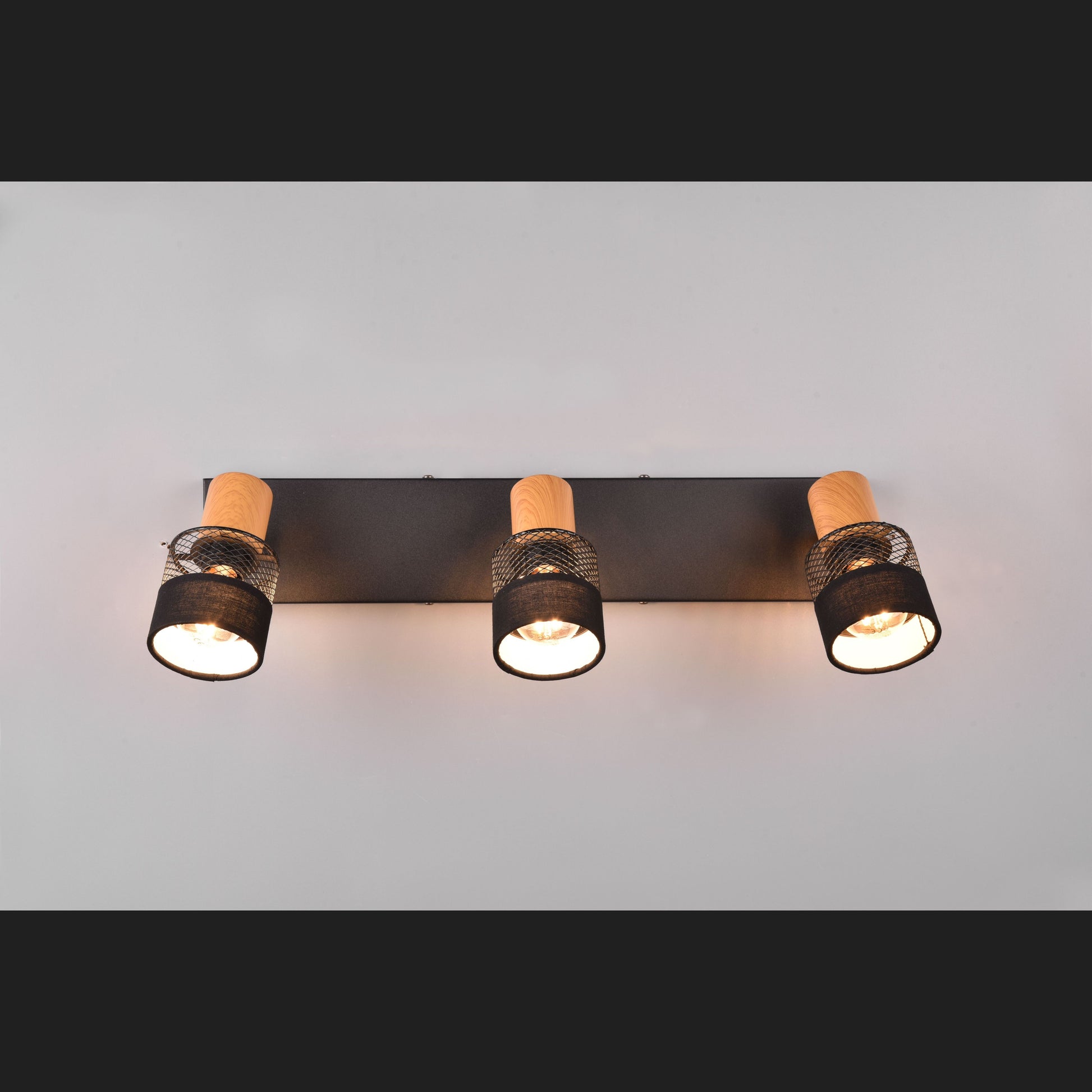 Lightness through an interesting mix of materials! The spotlights in the NANDINI range combine wood, textile and metal in a timeless way that is currently very trendy and at the same time creates a cosy living ambience. The three-lamp spotlight is the ideal choice for setting individual lighting accents in the hallway or living area and scores points with its flexible mounting on the wall or ceiling. The spotlight will delight you with its cosy flair and play of light! The combination of metal in matt black and wooden elements can be found in modern and minimalist furnishing styles. The use of LED light sources is recommended for energy-saving lighting. These are an ideal alternative to conventional halogen light sources and offer high light quality and energy savings of up to 80%. With LED light sources, you also benefit from a long service life and low heat generation while protecting the environment.