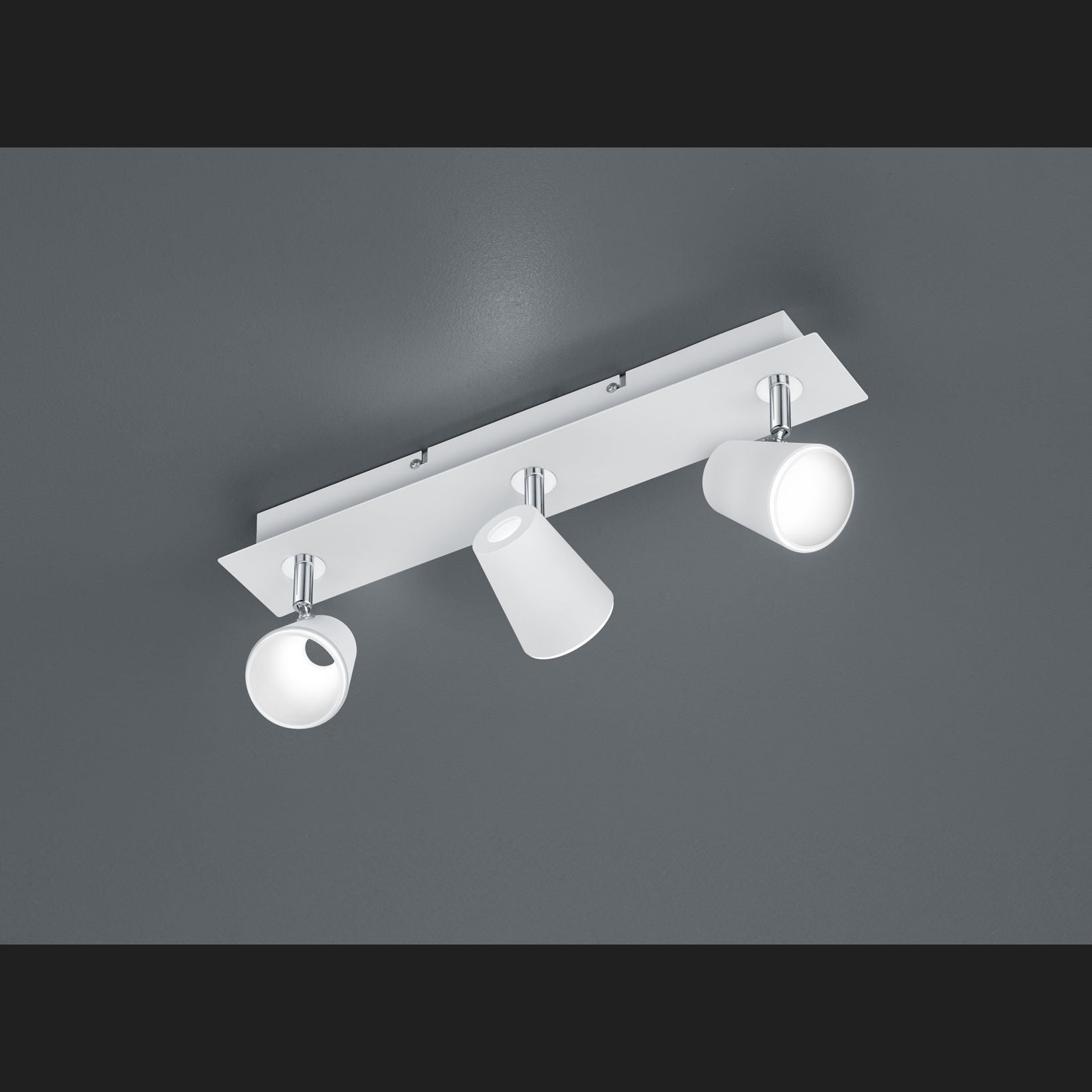 The three-light bar in the NARCOS series stands out in particular thanks to the conical design of the spotlights! This reflects timeless elegance and modernity at the same time. The light cuts a fine figure in the living room or bedroom as well as in the hallway or dining area. It has a width of 45 cm, a height of 16 cm and a depth of 7.5 cm. The matt white colour scheme emphasises the design of the light and invites integration into a modern furnishing style. But combining it with other colours is no challenge either. In addition, the luminaire features modern LED technology, which is characterised by high light quality and energy efficiency. Compared to conventional halogen lamps, up to 80% of energy costs can be saved. In addition, LED light sources have a long service life, produce less heat and protect the environment.