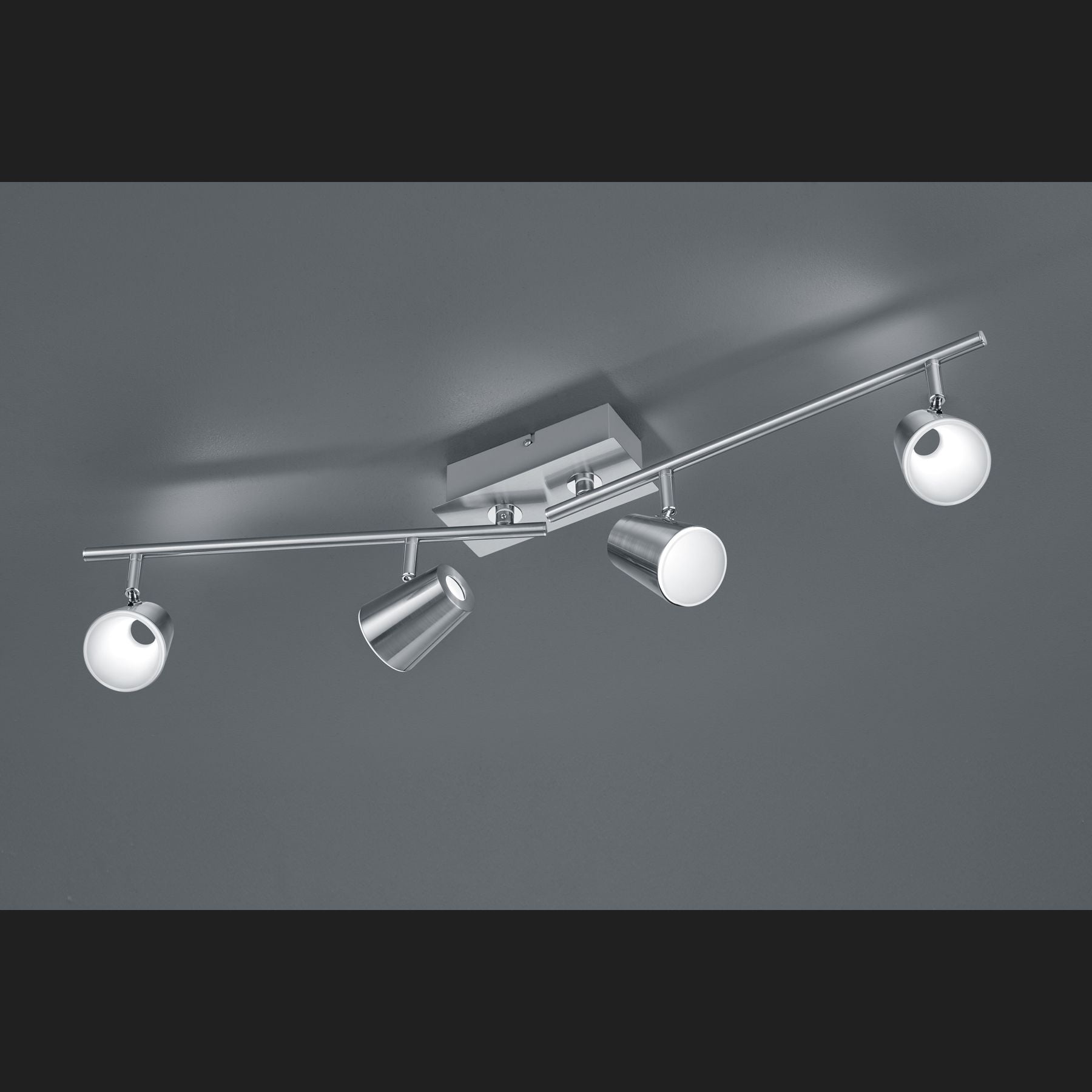 The four-flame bar in the NARCOS series stands out in particular thanks to the conical design of the spotlights! This reflects timeless elegance and modernity at the same time. The light cuts a fine figure in the living room or bedroom as well as in the hallway or dining area. The light arms can be swivelled and can therefore be adjusted to suit your requirements. It has a width of 45 cm, a height of 16 cm and a depth of 7.5 cm. The matt nickel colour scheme emphasises the design of the light and invites integration into a modern furnishing style. Combining it with other colours is also no challenge. In addition, the luminaire features modern LED technology, which is characterised by high light quality and energy efficiency. Compared to conventional halogen lamps, up to 80% of energy costs can be saved. In addition, LED light sources have a long service life, produce less heat and protect the environment.