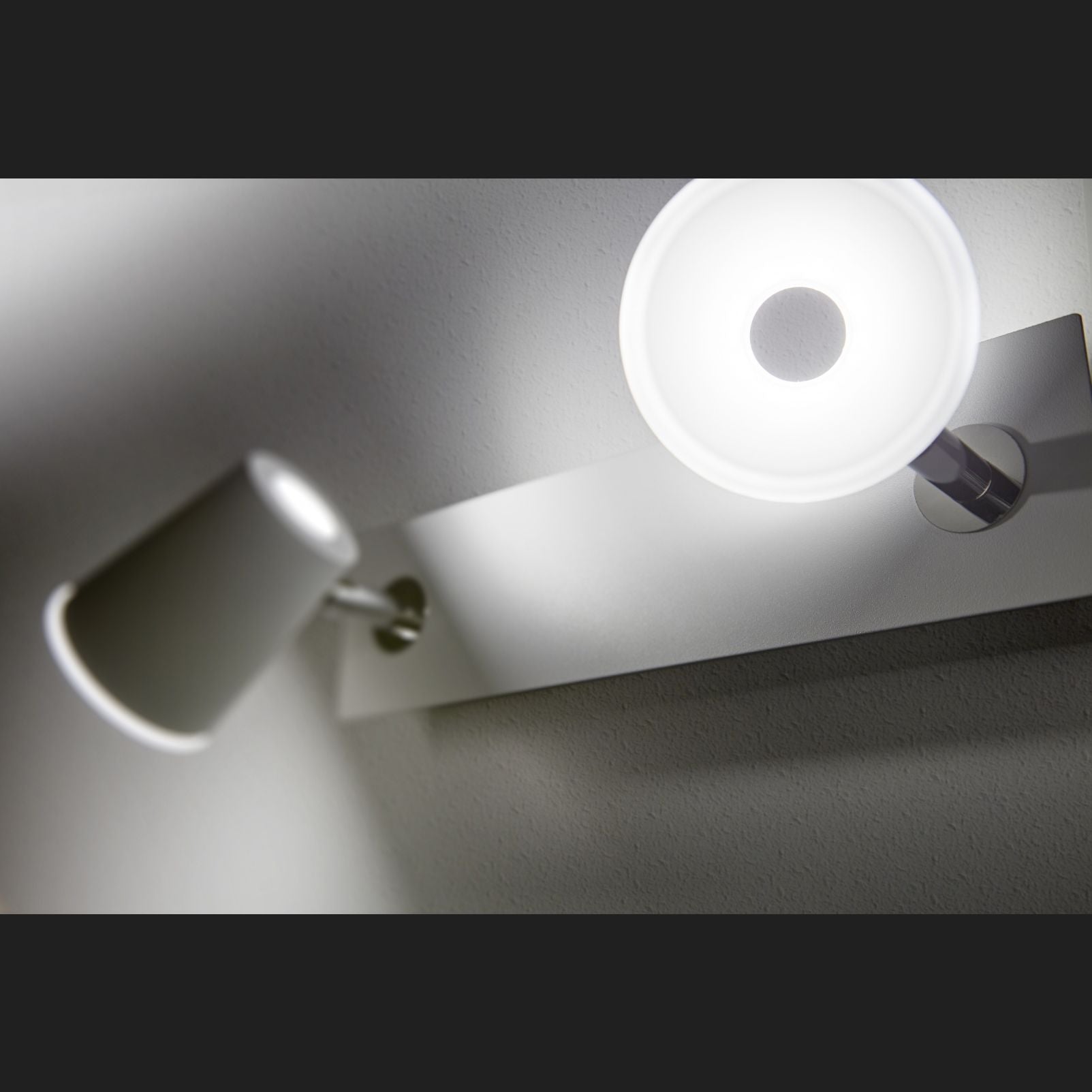 The two-light bar in the NARCOS series stands out in particular thanks to the conical design of the spotlights! This reflects timeless elegance and modernity at the same time. The light cuts a fine figure in the living room or bedroom as well as in the hallway or dining area. The light arms can be swivelled and can therefore be adapted to your circumstances. It has a width of 28.5 cm and a height of 9.5 cm. The matt white colour scheme emphasises the design of the light and invites integration into a modern furnishing style. But combining it with other colours is no challenge either. In addition, the luminaire features modern LED technology, which is characterised by high light quality and energy efficiency. Compared to conventional halogen lamps, up to 80% of energy costs can be saved. In addition, LED light sources have a long service life, produce less heat and protect the environment.