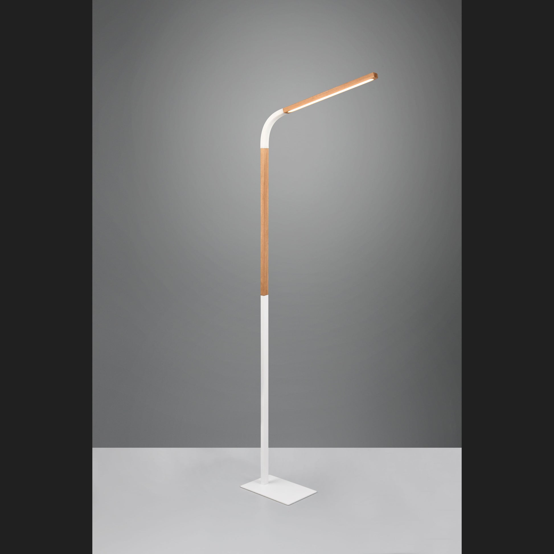 Relaxing with a book or tablet after work - this requires a harmonious lighting ambience: With its integrated SWITCH dimmer, the NORRIS floor lamp offers a solution that is easy on the eyes, as the brightness can be adjusted in three levels (100%, 50% and 25%) as required. Thanks to the flexible arm of the NORRIS, the light can be directed individually, making the lamp the perfect choice for an evening break with a tablet or favourite book. Place the floor lamp next to or behind the sofa and enjoy your cosy reading corner! The purist silhouette of the light and the successful combination of natural wood and matt white metal are impressive in every respect. The luminaire also features modern LED technology, which is characterised by high light quality and energy efficiency. Compared to conventional halogen light sources, up to 80% of energy costs can be saved. LED light sources also have a long service life, produce less heat and protect the environment.