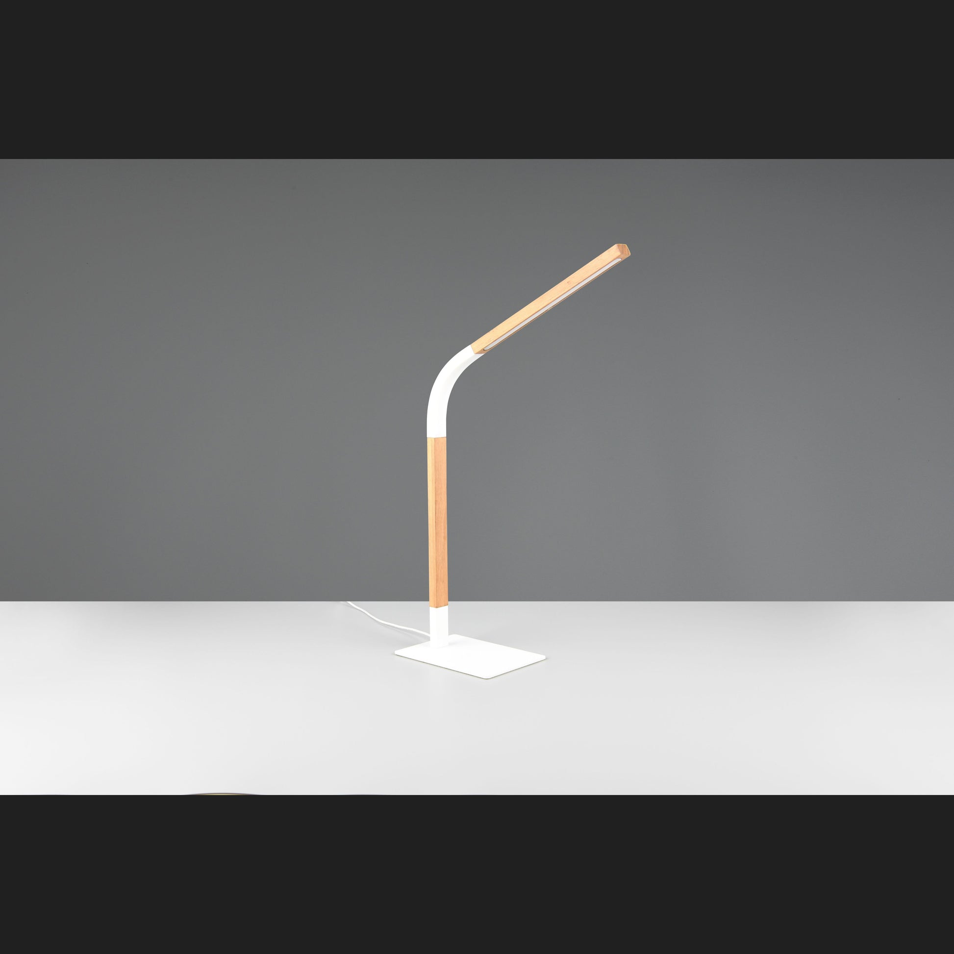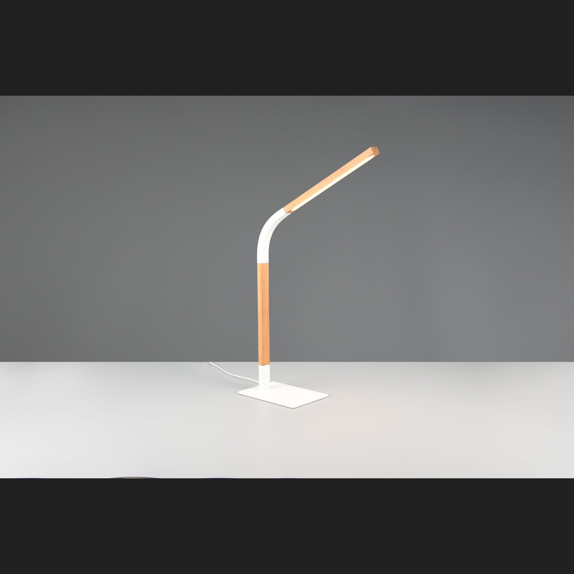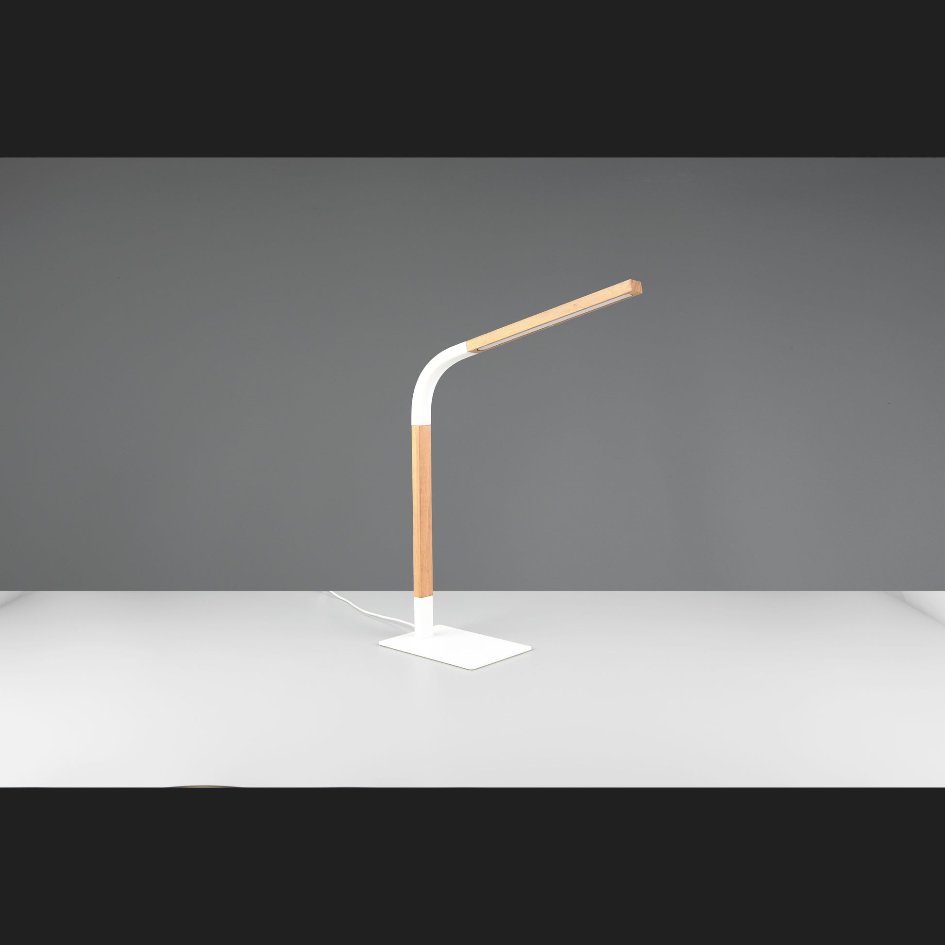 Concentrated work at the desk - this requires a harmonious lighting ambience: With its integrated SWITCH dimmer, the NORRIS table lamp offers a solution that is easy on the eyes, as the brightness can be adjusted in three levels (100%, 50% and 25%) as required. Thanks to the flexible arm of the NORRIS, the light can be directed individually, making the luminaire the ideal choice for any work area. The purist silhouette of the light and the successful combination of natural wood and matt white metal are impressive in every respect. The luminaire also features modern LED technology, which is characterised by high light quality and energy efficiency. Compared to conventional halogen light sources, up to 80% of energy costs can be saved. LED light sources also have a long service life, produce less heat and protect the environment.