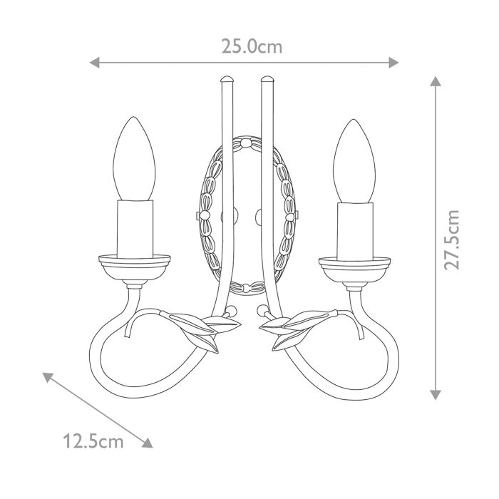 The elegant Olivia 2 lt wall light is completely handmade and hand finished, designed and manufactured by Elstead Lighting in their factory in Alton, Hampshire, UK. Optional glass shades can be added. Made in England.