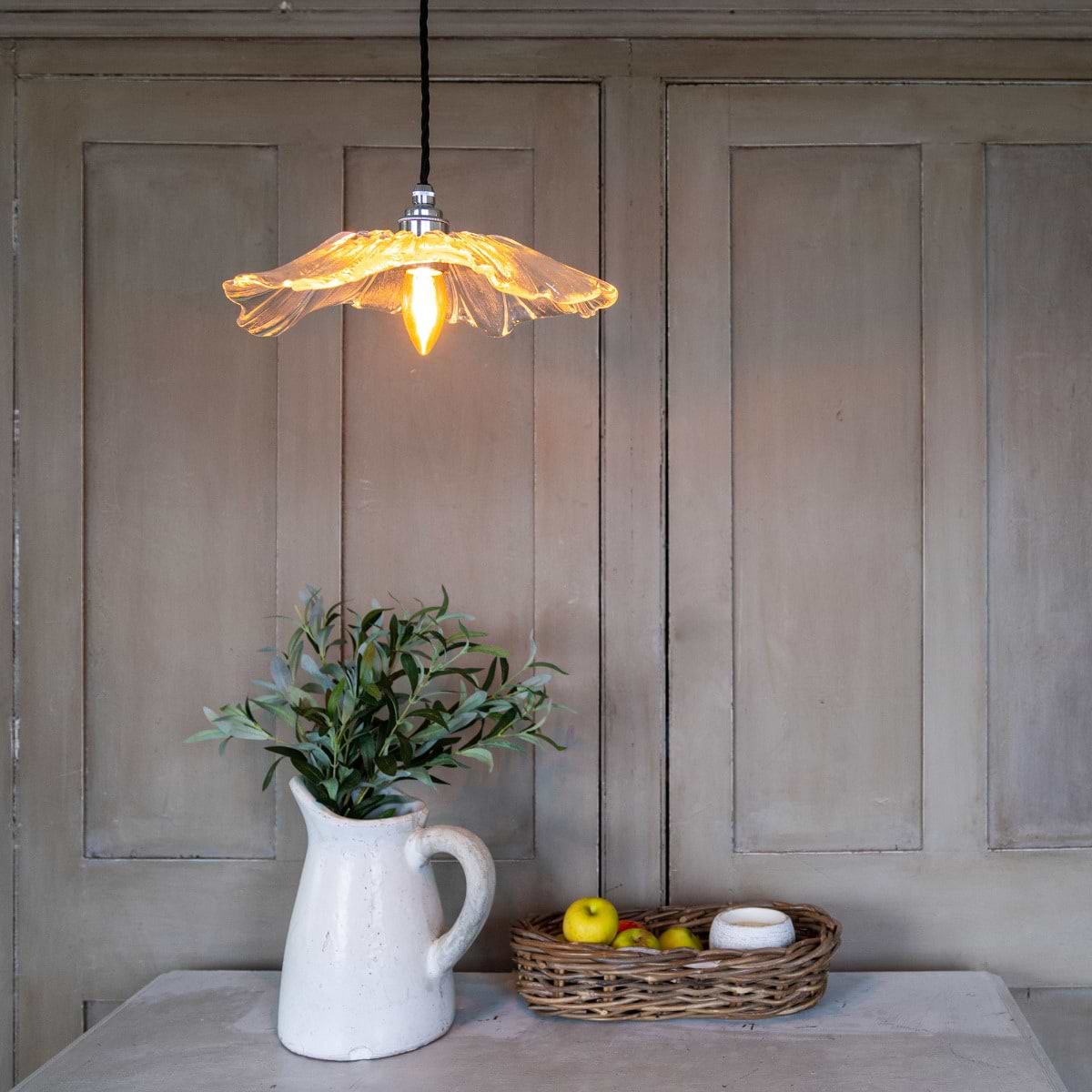 For those who love an Art Deco aesthetic, the Organic Fleur Pendant is a nod to that period, its intricate glass shade inspired by a beautiful bloom. This fluid shape, like the petals of an open flower, will bring a decorative charm to your interior. Each pendant comes with a beautifully manufactured bulb holder from S Lilley & Son Ltd.