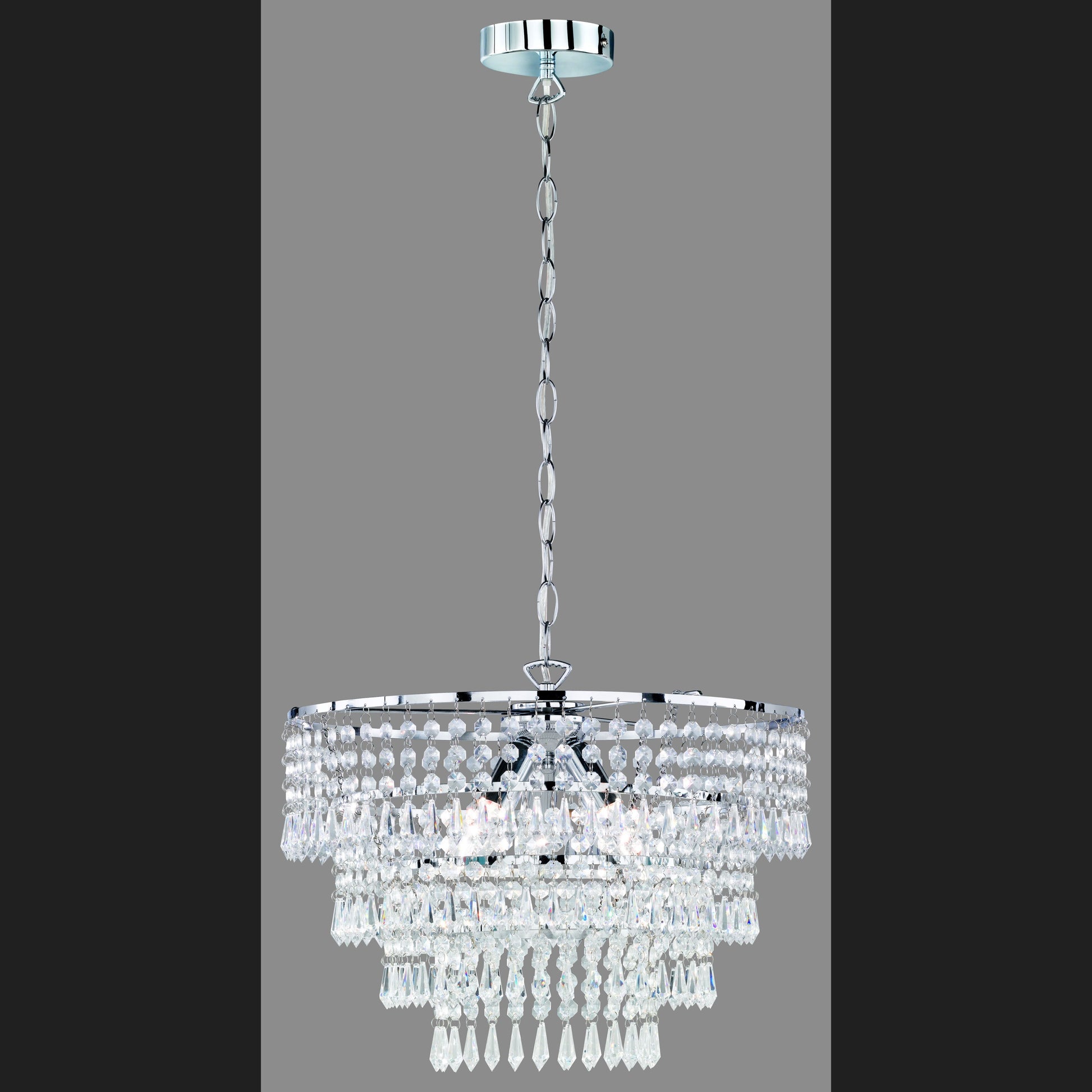 The elegant ORIENT chandelier is an absolute eye-catcher. No matter in which room, this pendant light leaves a lasting impression. It impresses with its elegant and sumptuous appearance. A tasteful eye-catcher for anyone who likes it classy. The chandelier has a diameter of 43 centimetres. The clear acrylic hanging provides atmospheric light. The suspension and frame are made of chrome-plated metal. For energy-saving lighting, it is recommended to use an LED illuminant. These are an optimal alternative to conventional halogen lamps and stand for a high quality of light and energy savings of up to 80%. In addition, LED lamps help you benefit from a long service life, low heat generation and at the same time protect the environment.