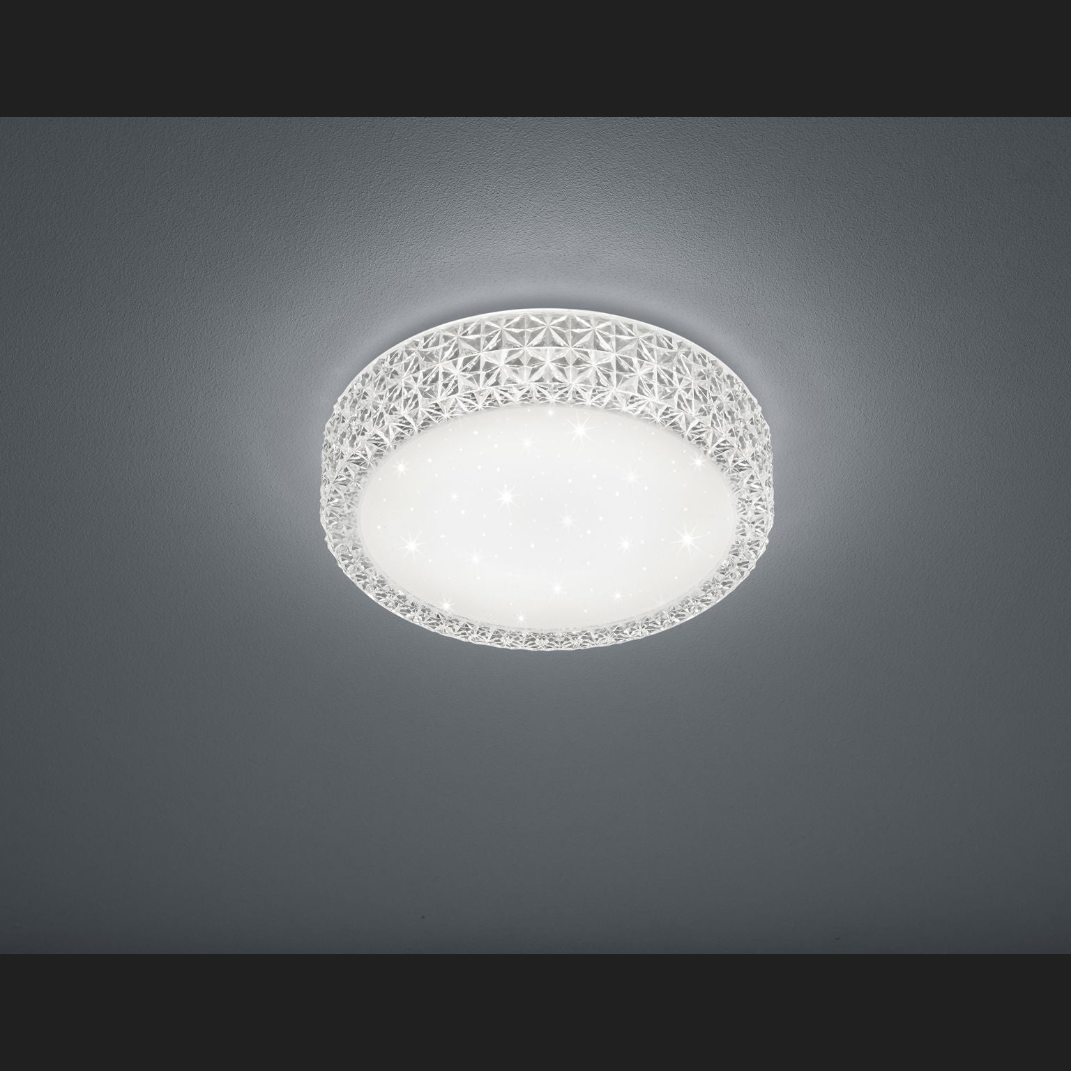 The PEGASUS ceiling light provides good, even illumination in your room. The glitter effect on the lampshade gives the Pegasus ceiling light that certain something. The diameter is 28cm. The PEGASUS luminaire made of white acrylic is contrasted by the stylishly polished white edge, which gives the luminaire an elegant and high-quality character. Small stones on the top create an atmospheric lighting ambience In addition, the luminaire features modern LED technology, which is characterised by high light quality and energy efficiency. Compared to conventional halogen lamps, up to 80% of energy costs can be saved. In addition, LED light sources have a long service life, produce less heat and protect the environment.