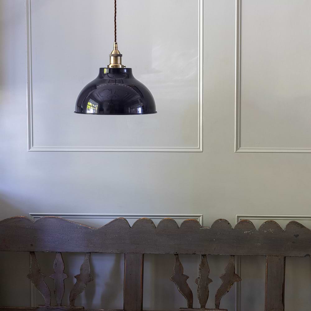 The Pembroke, with its curved enamel dome, casts a perfect task light on the surface below. The hand painted Squid Ink Blue finish is boldly striking and is paired with a choice of bulb holder to suit your decor style.