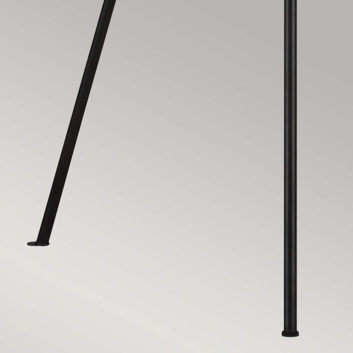 The Aged Iron Penny Floor Lamps are timeless and sleek, with a mid-century-inspired tripod base and elongated legs that meet at a tailored point. The Penny portables include a fabric shade in White Linen. LS373